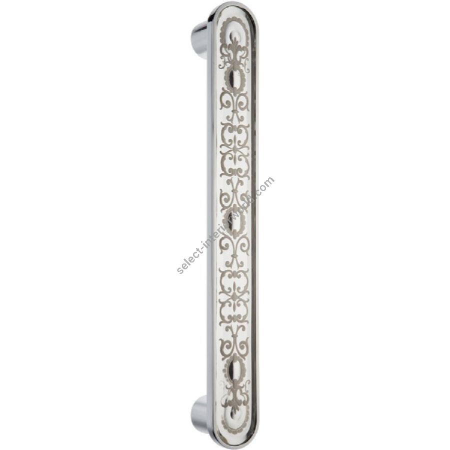 Structure made of brass with chrome-plated shiny finish. Handle made of bevelled and decorated clear mirror.