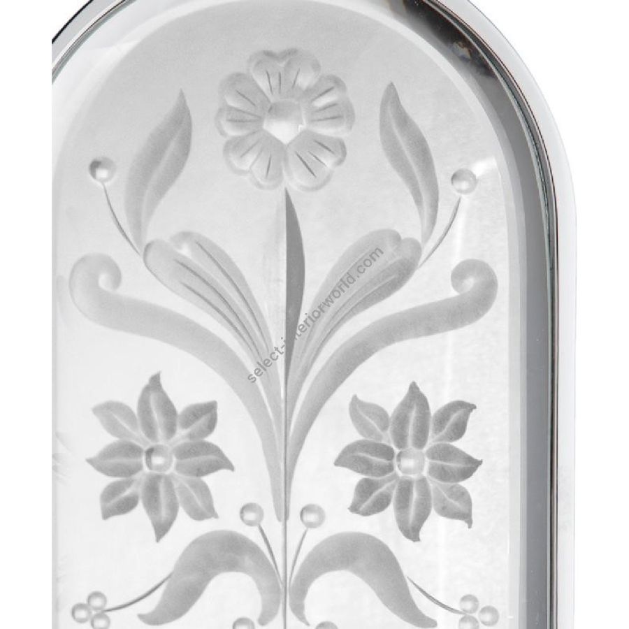 Structure made of brass with chrome-plated shiny finish. Handle made of bevelled and decorated clear mirror.