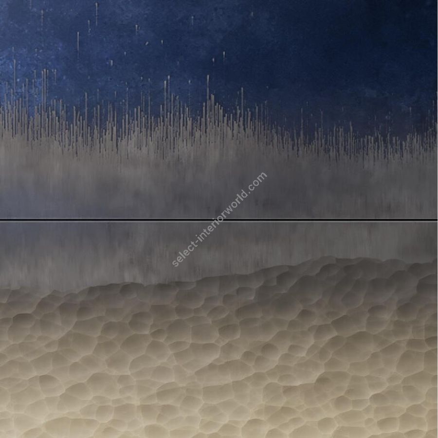 Ash veneered plywood structure with titanium metallic lacquer. Metal profiles with brushed black nickel finish. Top, sides and 6 drawers decorated with Stromboli finish.