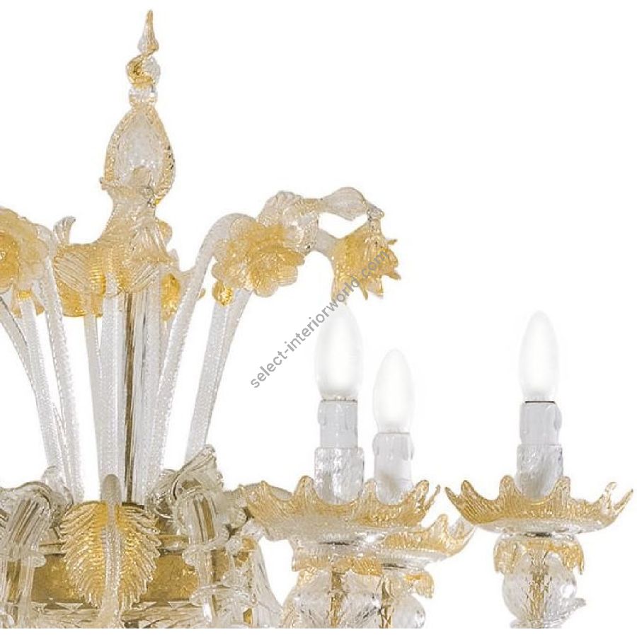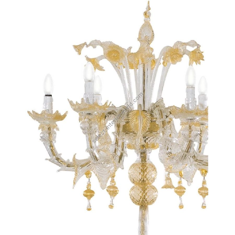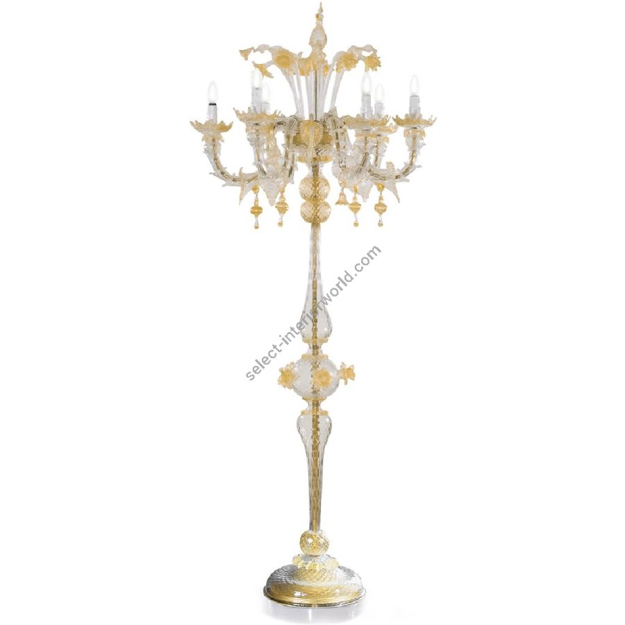 Venetian style candelabra floor lamp with six crystal gold colour hand-blown Murano glass lights.