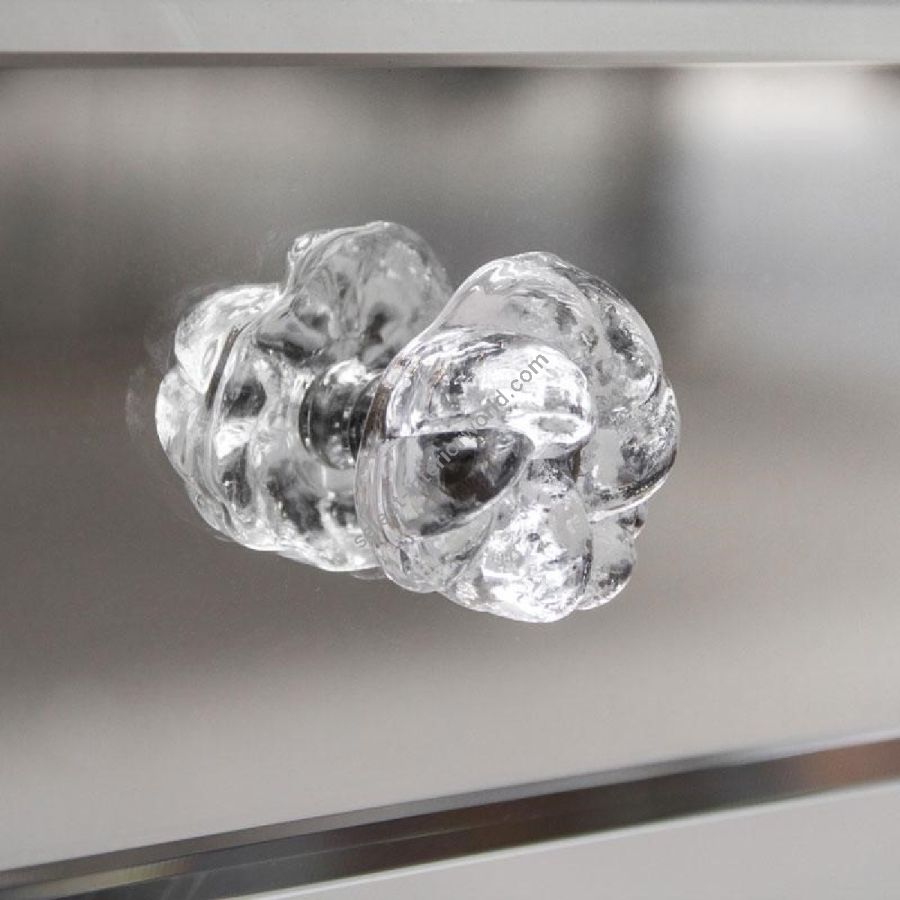 Rosette-shaped glass knob with chrome-plated-plated brass.