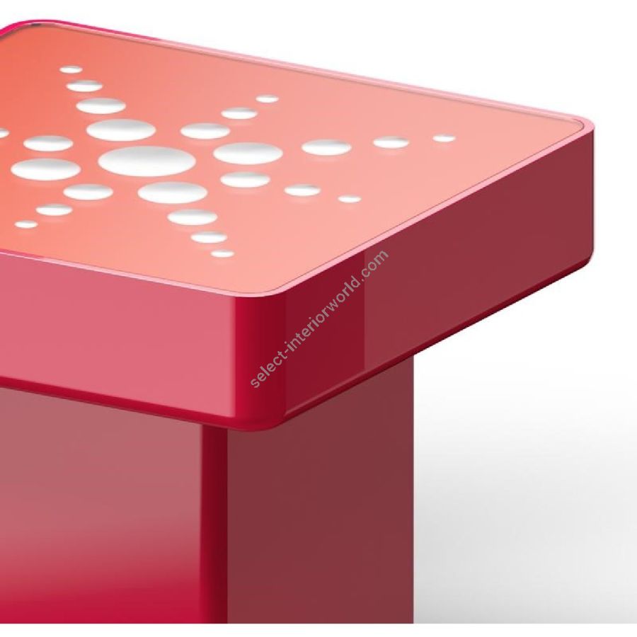 Top with extra-clear acid etched 6 mm thick glass varnished in multicolour and decorated with silver hand engravings.