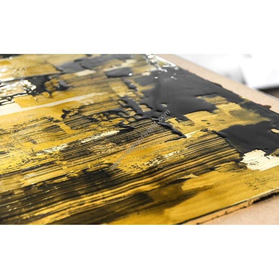 “Girgenti” decor with white and ochre varnish hues on a scratched gold leafed pattern.