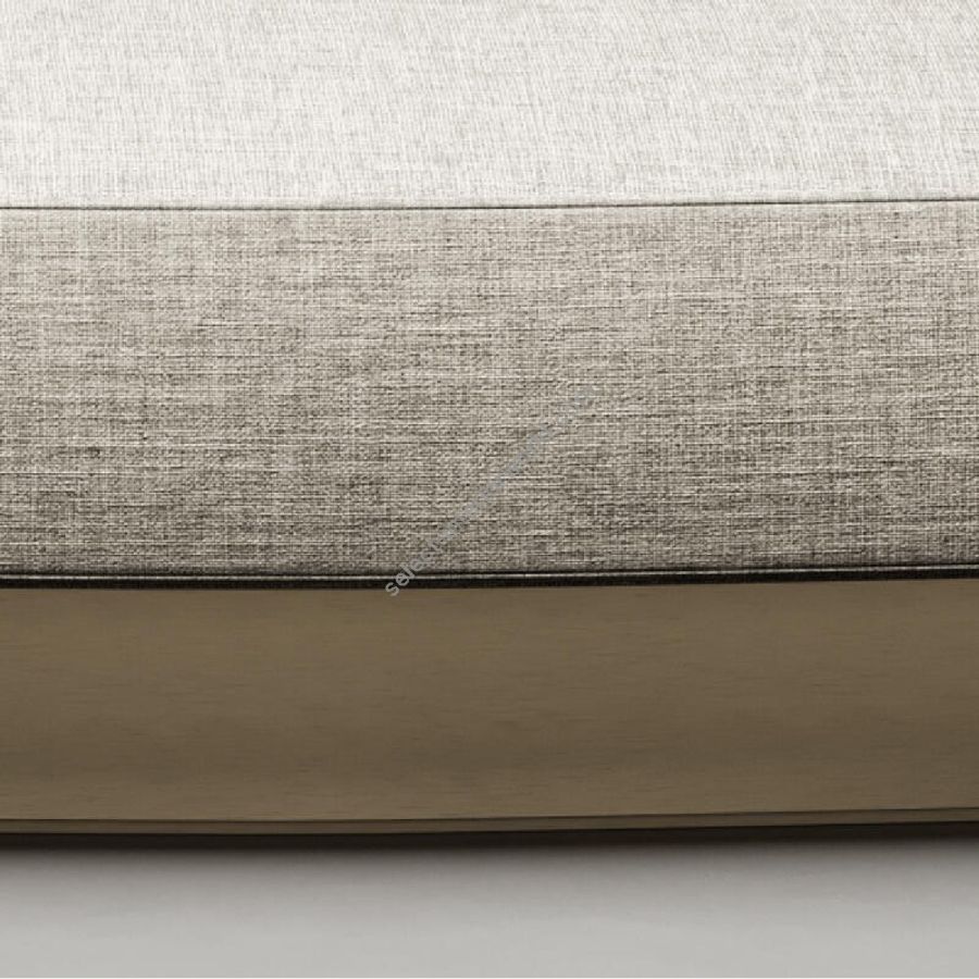 Wooden base covered in a sheet of brushed-finish burnished brass. Back and seat upholstered and covered in light grey fabric.