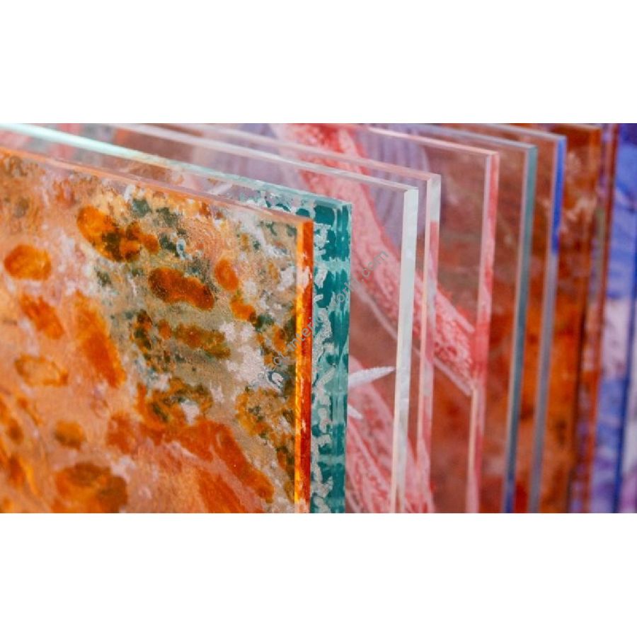The inspiration comes from nature and its landscapes. The ever shifting variety of colours and shapes are the subjects of the painted glass walls, of the pen-engraved screens, of the finishes of our furnishings. Each finish can be applied in a thousand different ways. You can furnish a wall, cover a cabinet, decorate the doors of a bespoke closet or even apply the decoration to coffee tables or nightstands and, why not, also to chandeliers with a modern twist.