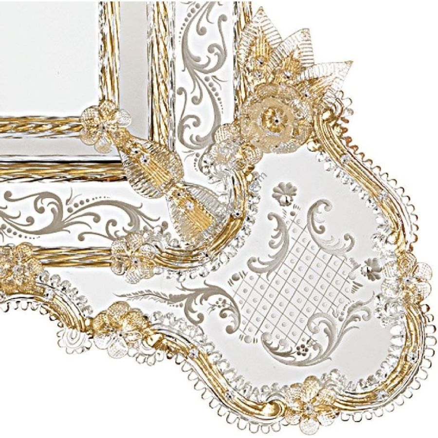 Last but not least: do not worry if the mirror's decorations seem badly fixed. Our master artisans preserve the historical tradition in avoiding to fix the glass parts. In fact leaving those parts mobile and tying them with an iron wire is the correct procedure both to respect Venetian roots and above all, to avoid damage and breakage of the glass.