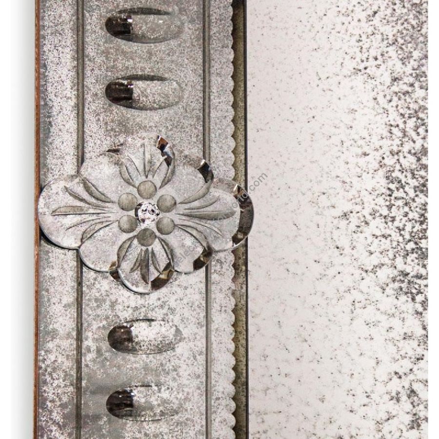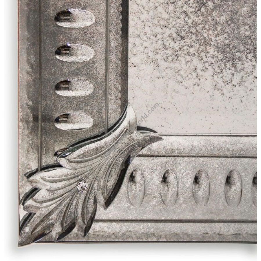 Frames with thumbnail-shaped etchings and crest made of bevelled and engraved glass with medium antique mirrored finish.
