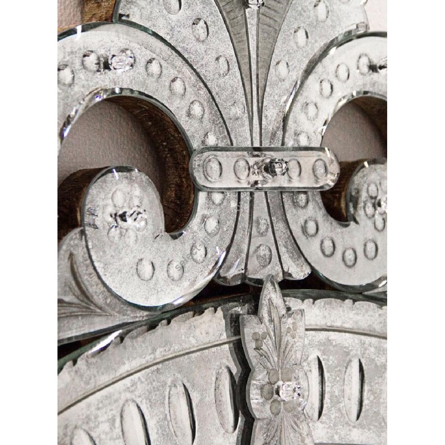 A French mirror is in fact made of lots of different bevelled pieces that are close together and create a harmonious geometrical figure. A beautiful example is, an iconic mirror by Arte Veneziana that is made of 412 hand bevelled pieces. The most visible difference between a Venetian and a French mirror is the total absence of hand-blown glass decorations on the latter.