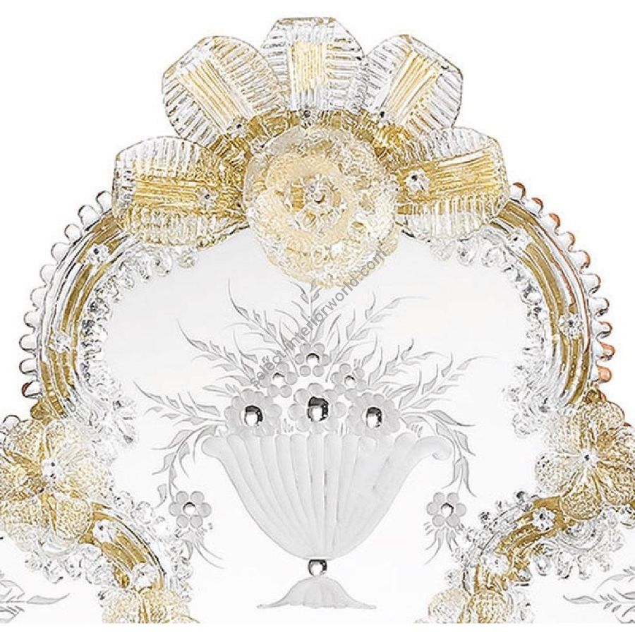 Last but not least: do not worry if the mirror's decorations seem badly fixed. Our master artisans preserve the historical tradition in avoiding fixing the glass parts. In fact leaving those parts mobile and tying them with an iron wire is the correct procedure both to respect Venetian roots and above all, to avoid damage and breakage of the glass.