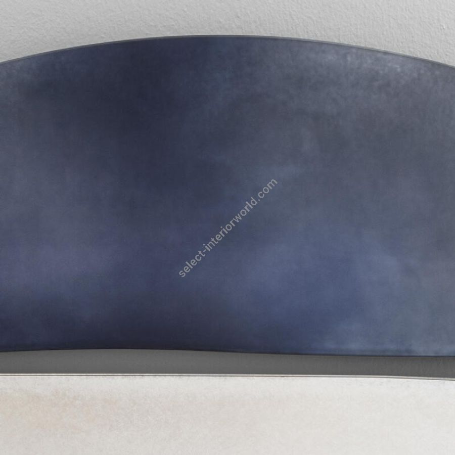 Stromboli decor in extra-clear acid-etched glass hand engraved and silvered on the front. Back painted with blue and silvered shades with heavy antique finish.