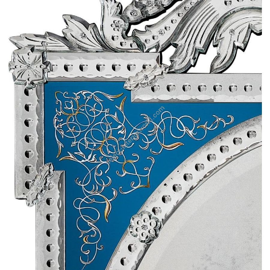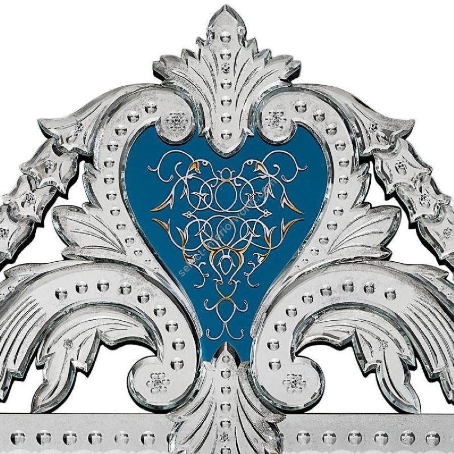 Central heart-shaped decor and corner tiles made of blue silvered glass with hand made painted decorations.