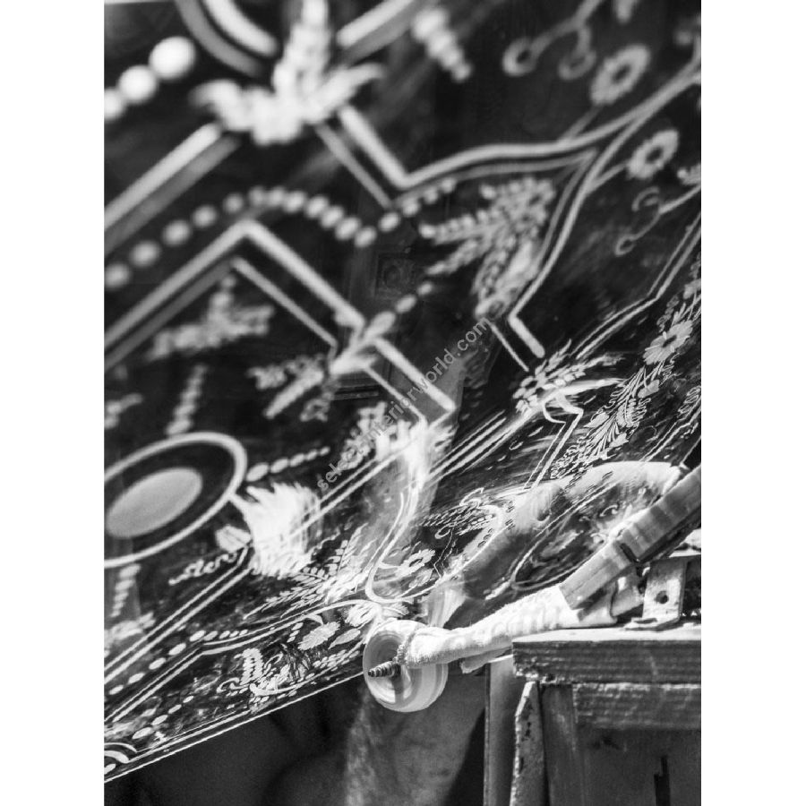 “Sharazad” decor engravings. Decorative rosettes and twisted ropes made of crystal coloured Murano glass.