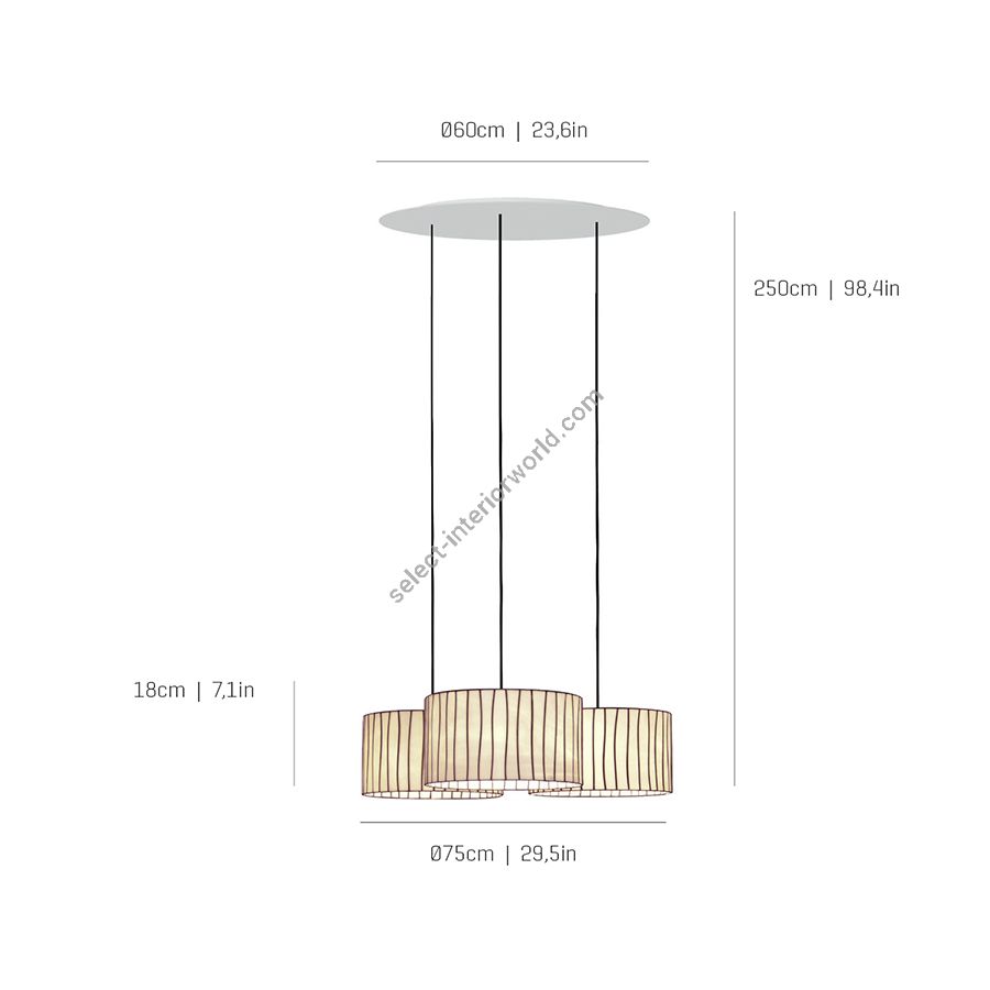 3 lights (cm.: 250 (H1/18+H2/232) x 75 x 75 / inch.: 98.4" (H1/7.1"+H2/91.3) x 29.5" x 29.5")