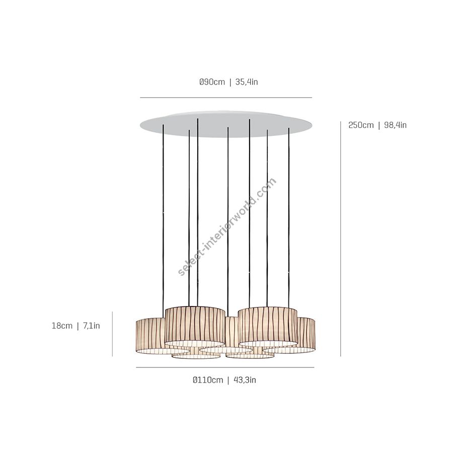 7 lights (cm.: 250 (H1/18+H2/232) x 110 x 110 / inch.: 98.4" (H1/7.1"+H2/91.3) x 43.3" x 43.3")