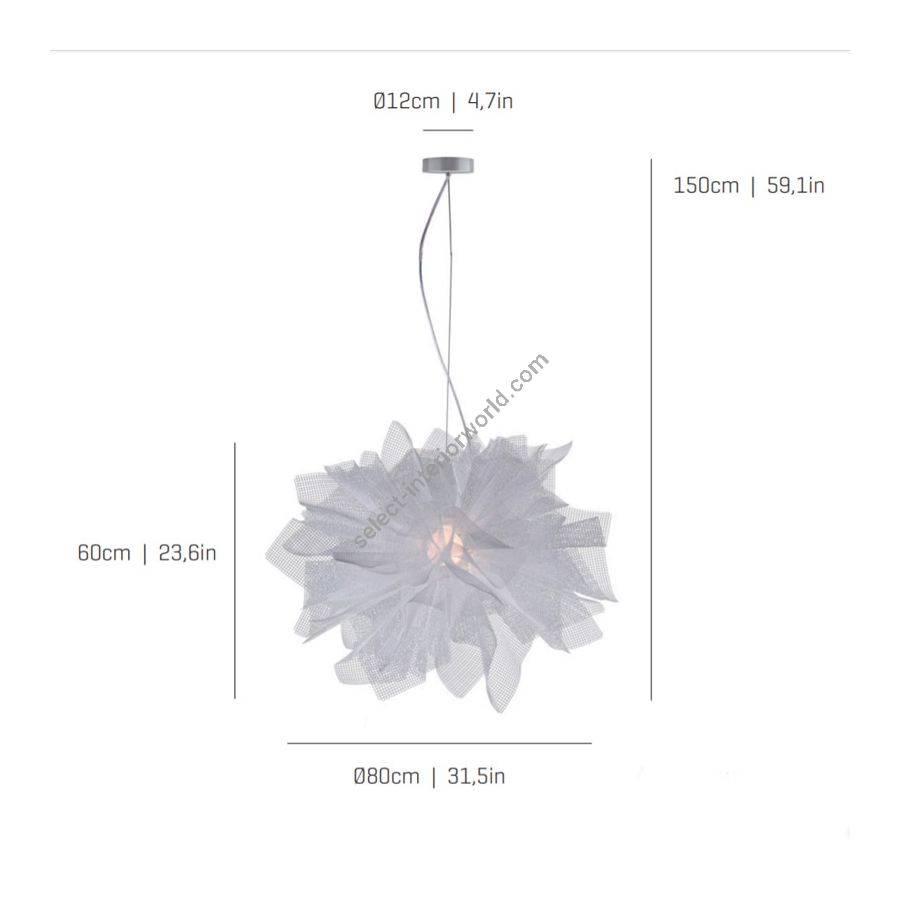This collection of pendant lamps is created from galvanizaed painted steel mesh veils that gather gracefully around a single light point. A light form which reproduces the illusion of a filmy fabric, like a semitransparent tulle that reveals and hides at the same time, playing with the observers intuition. The lightness of this design, that achieved a Good Design Award in 2009, is enhanced in the largest chandeliers of the collection.