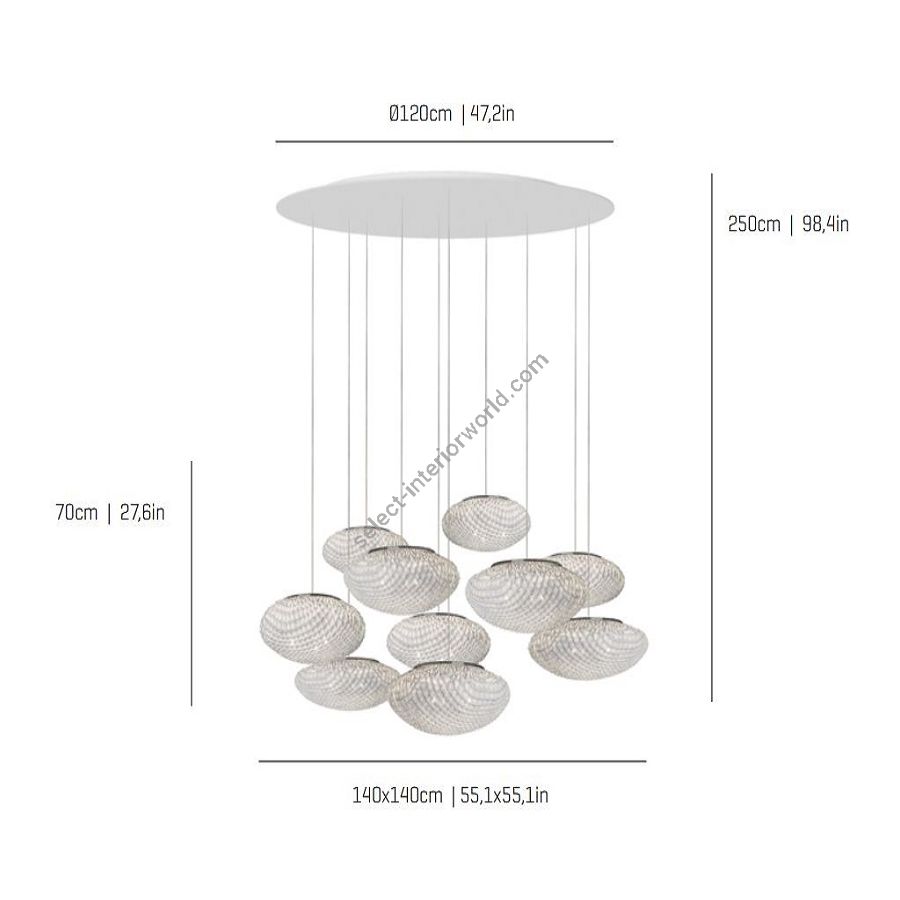 size: cm.: 250 (H1/70+H2/180) x 140 x 140 / inch.: 98.4" (H1/27.6"+H2/70.8") x 55.1" x 55.1"