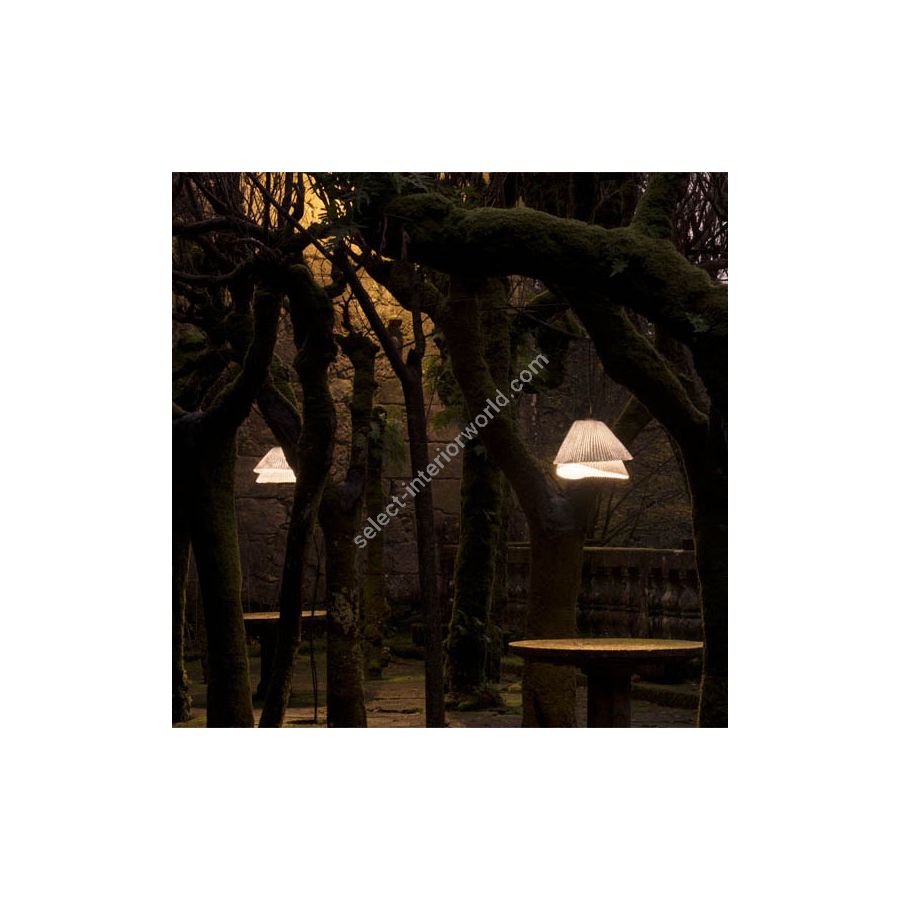 empo is a pendant lamp collection made with painted stainless steel mesh. This material, crafted in fine pleats, forms two overlapped layers that create two different lamps full of dynamism. Andante and Vivace, two liveliness shapes born from one. The representation of two instants generated by the same movement at a different tempo.