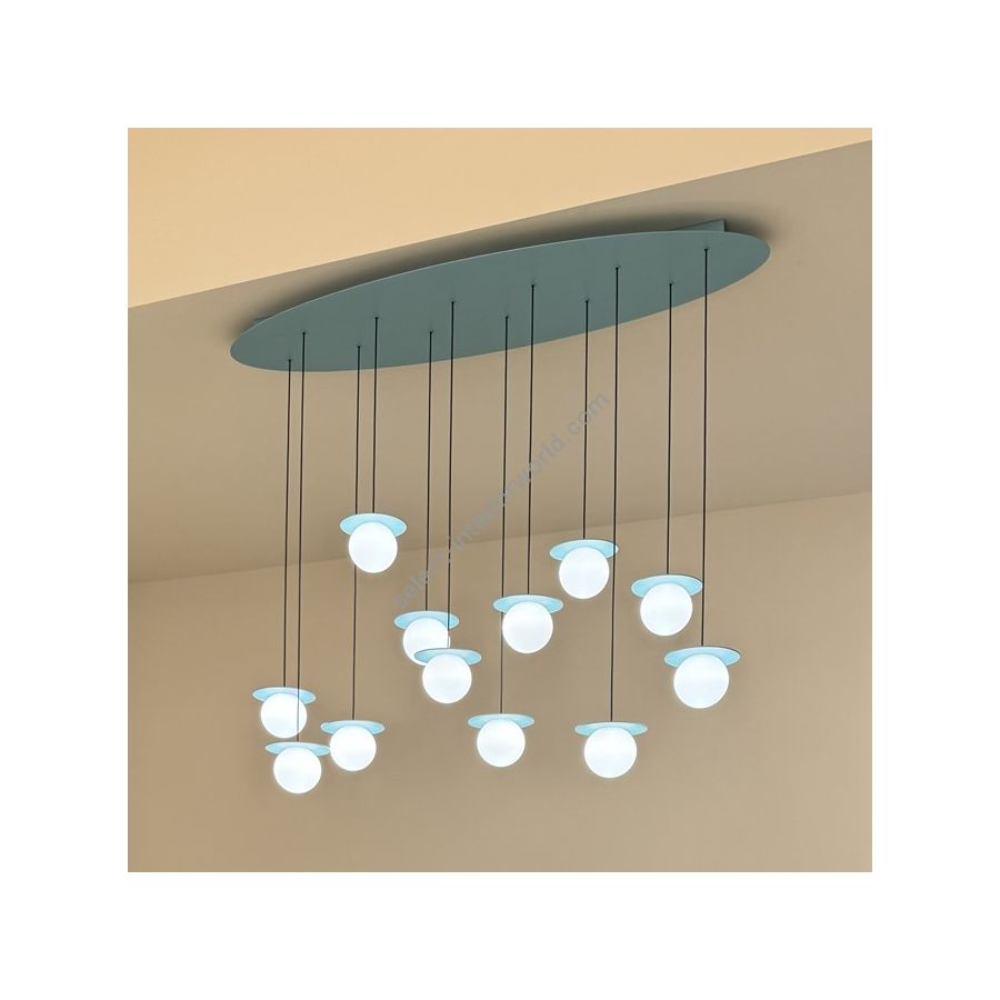 A few carefully chosen elements come together with effortless elegance, creating refined objects where attention to detail is paramount. Blown glass spheres transform into pure light, gently resting on colored metal discs that seem to float in space, while advanced technology operates seamlessly within.