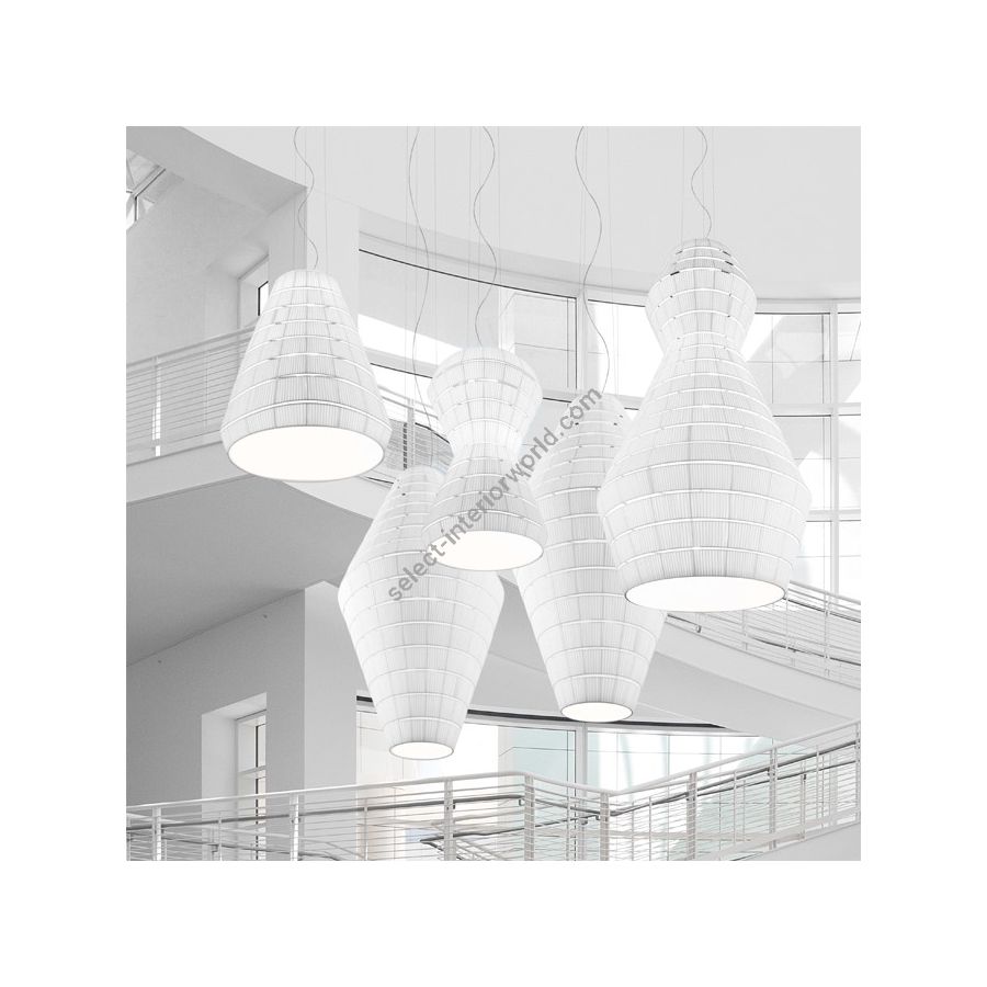 Layers is a sculptural pendant collection that combines geometric forms in a modular, customizable design. Despite the generous volumes, Layers has a lightweight structure that balances scale and flexibility, making it ideal for enhancing modern spaces with distinctive brightness and character.