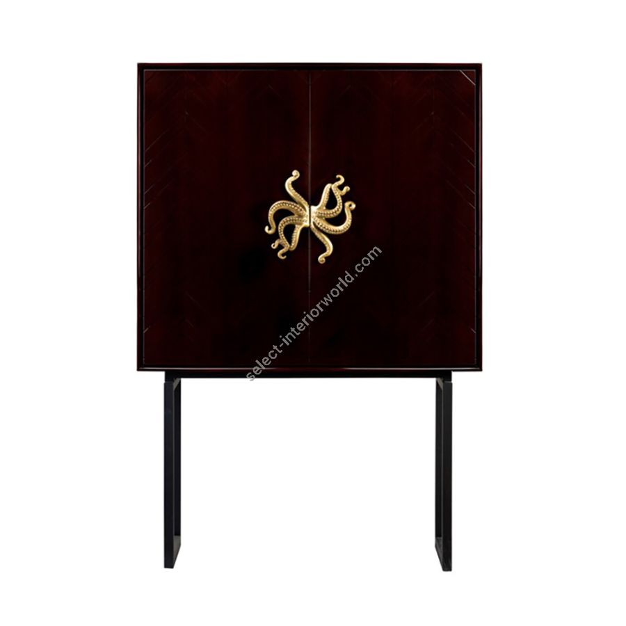 Uffizi Bar Cabinet with Cherry Wood Structure, Black Lacquered Iron Base and Brass Details.