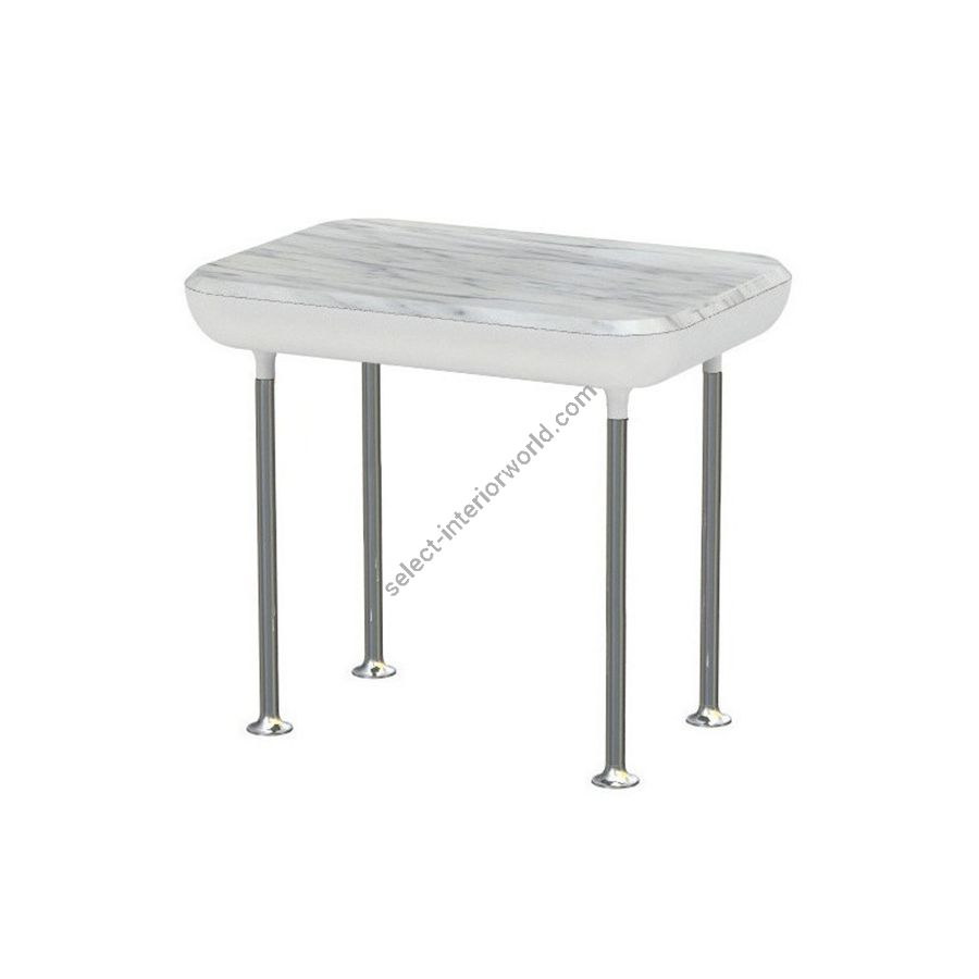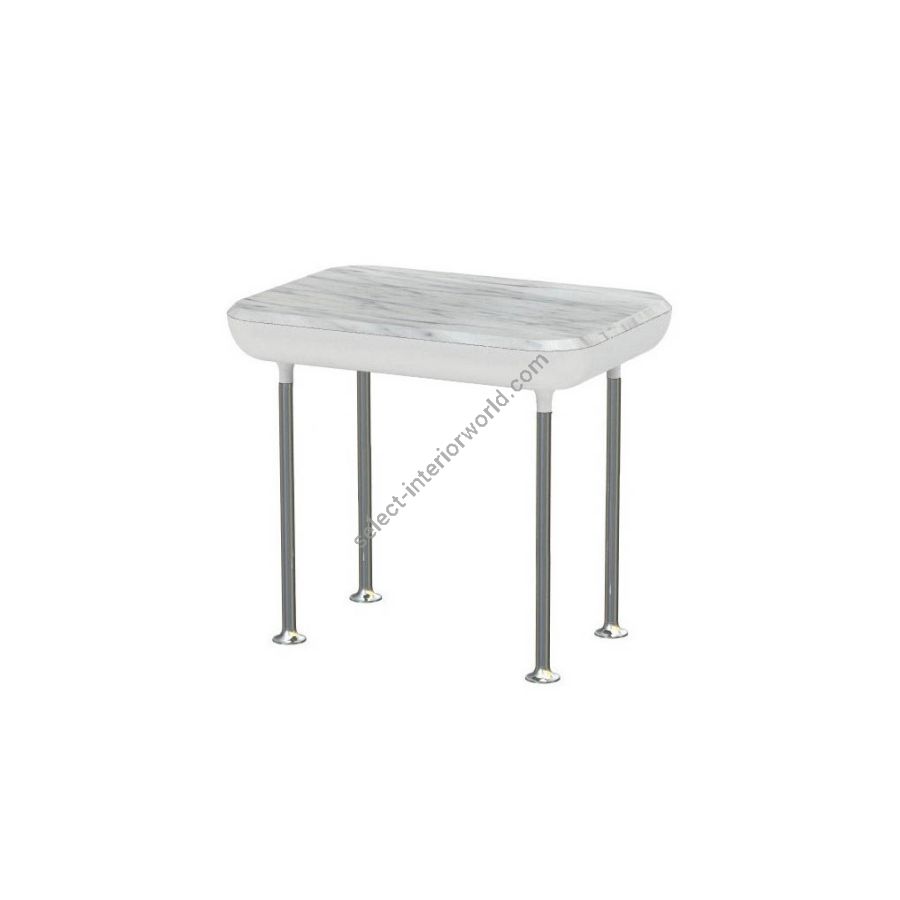 Table with chrome aluminium structure and top in bianco carrara marble.