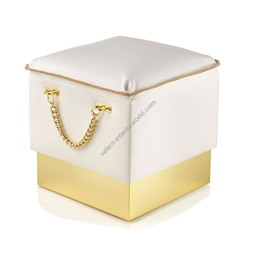 Pouff in White eco pelle with chain. Brass metal polished brass color.