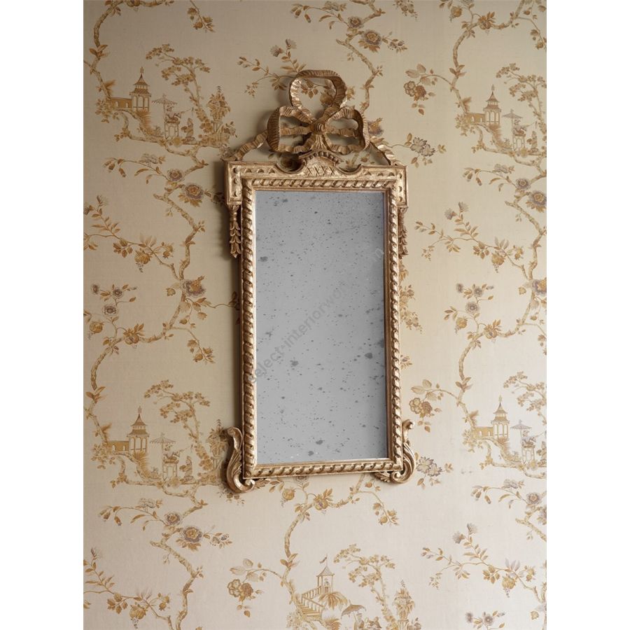 An elegantly proportioned small pier glass mirror, the Antoinette has a deeply carved realistic rope border crested by a finely carved ribbon bow.