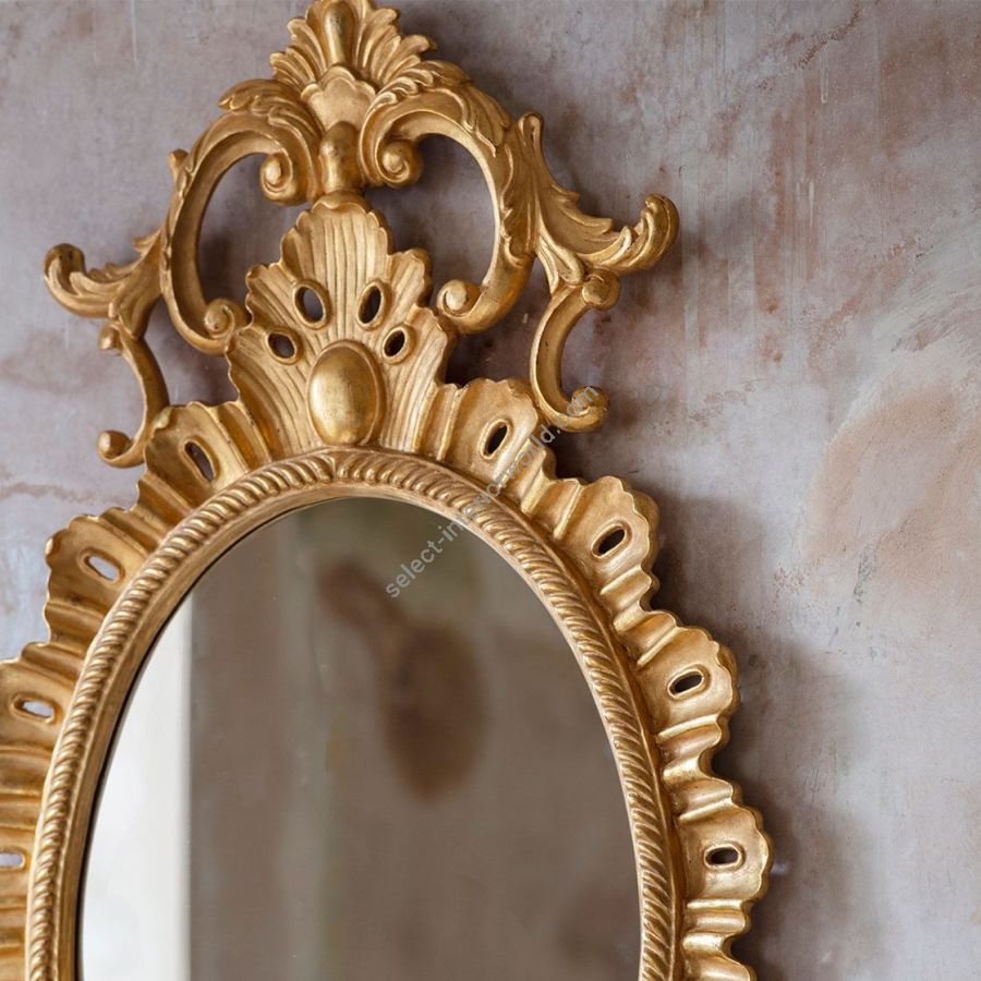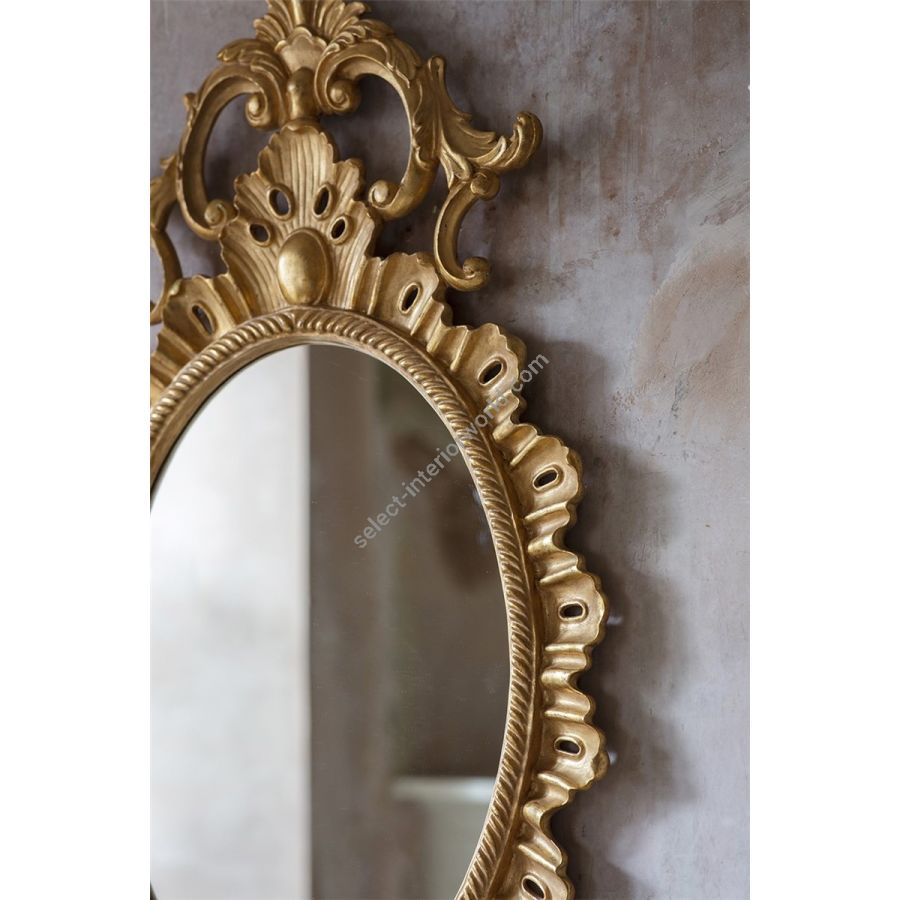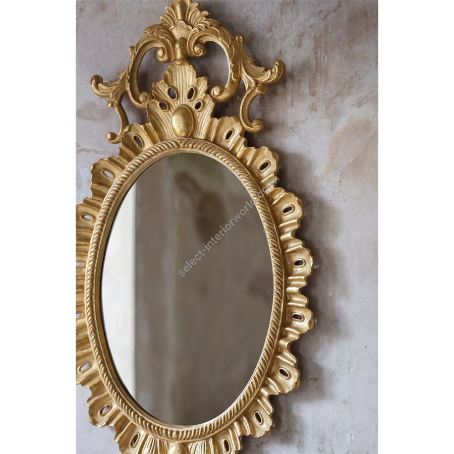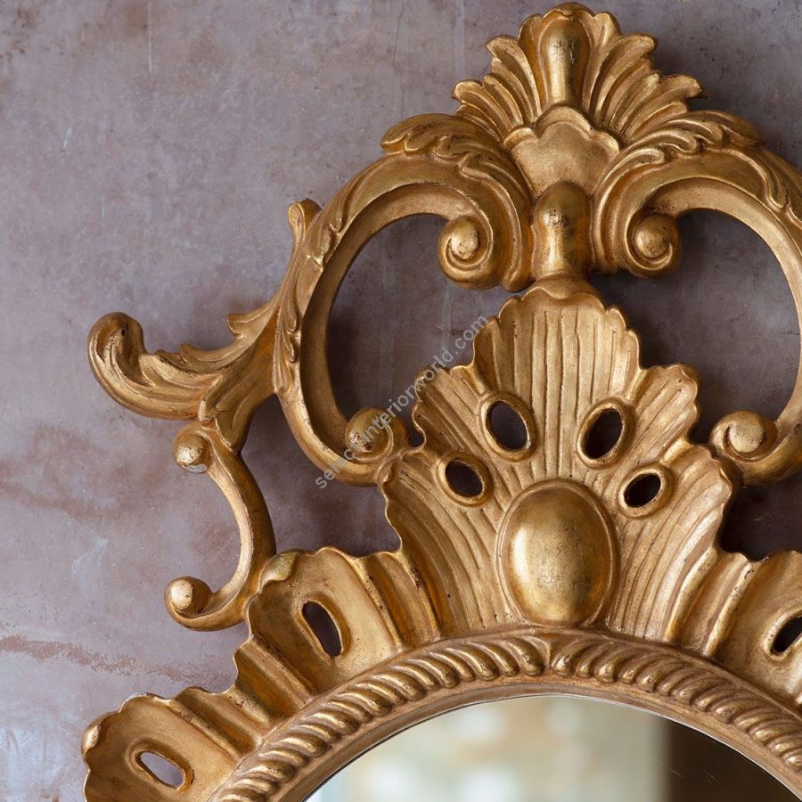 Our mirrors are made by skilled artisans. The unique range of highly decorative mirror is created by hand using traditional materials and methods, carved wood and gilding with subtle patination. The collection offers a unique and timeless style to interior decorators. Available only with plain mirror glass in the finish shown.