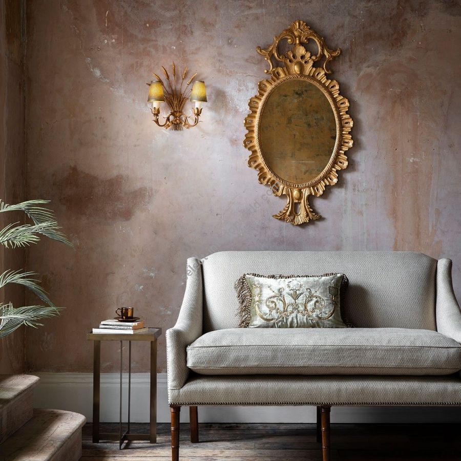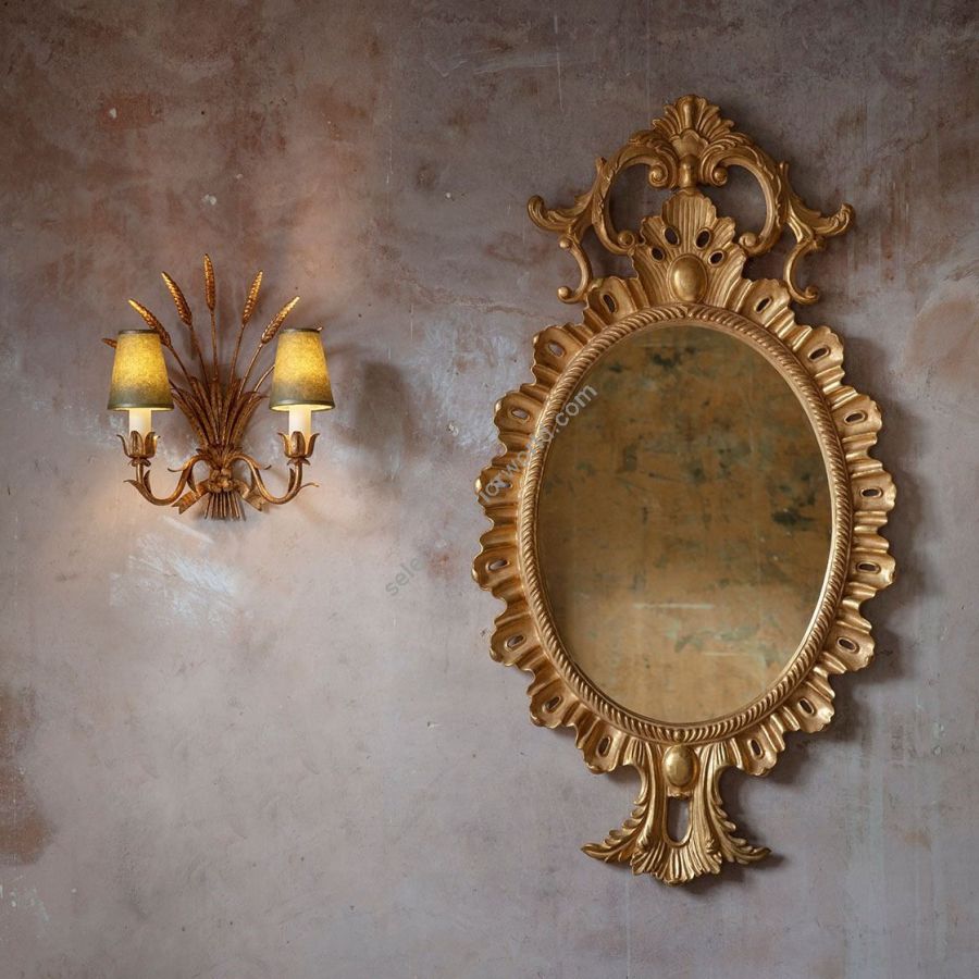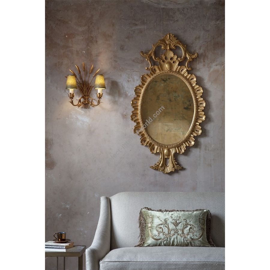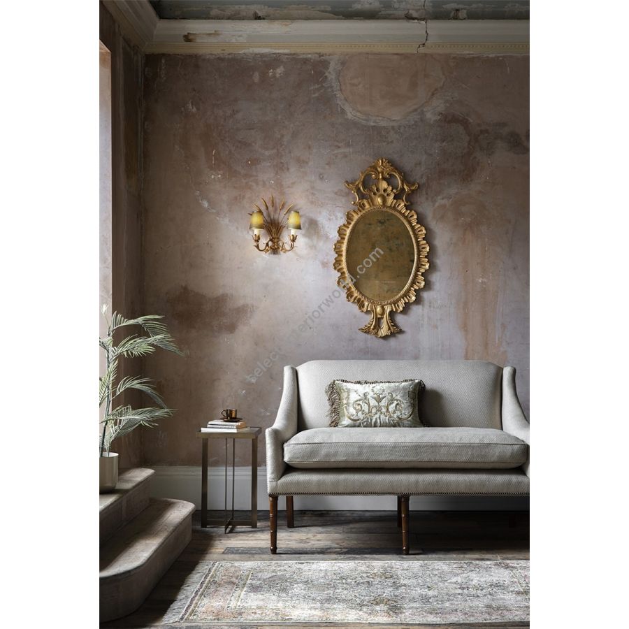 Our mirrors are made by skilled artisans. The unique range of highly decorative mirror is created by hand using traditional materials and methods, carved wood and gilding with subtle patination. The collection offers a unique and timeless style to interior decorators. Available only with plain mirror glass in the finish shown.