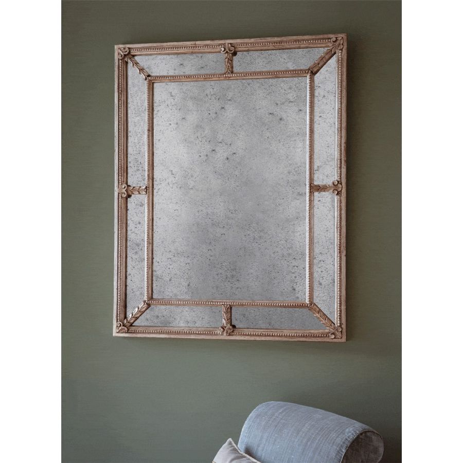 A beautifully proportioned over-mantle mirror in a restrained, decorative George III style, this piece comprises mirrored panels and giltwood spacing bars, finely carved with beads and leaves.