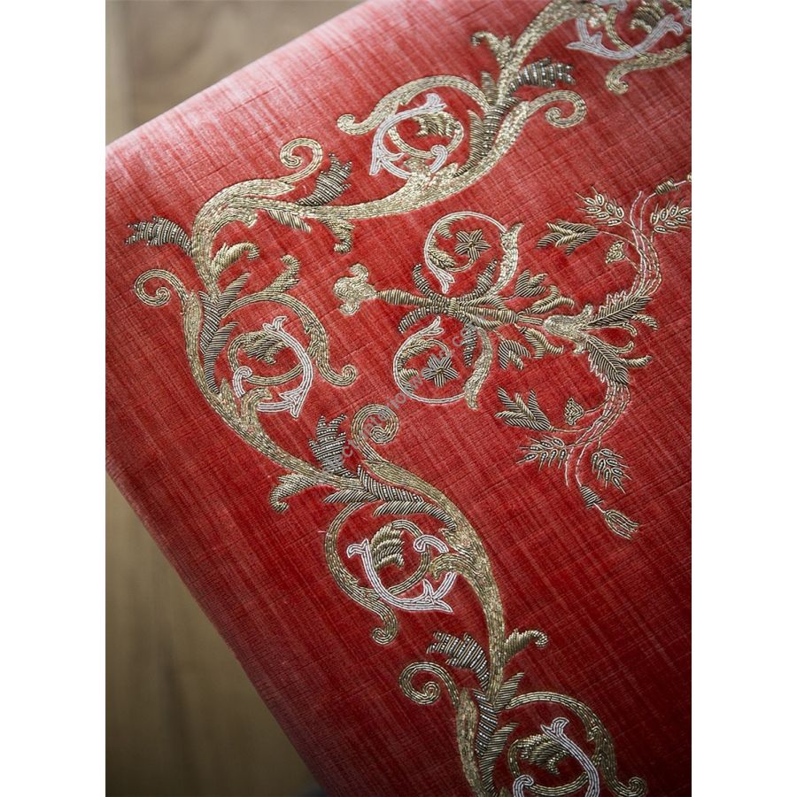 Delicately hand embroidered scrolls and leaves work together beautifully to create this classic design.