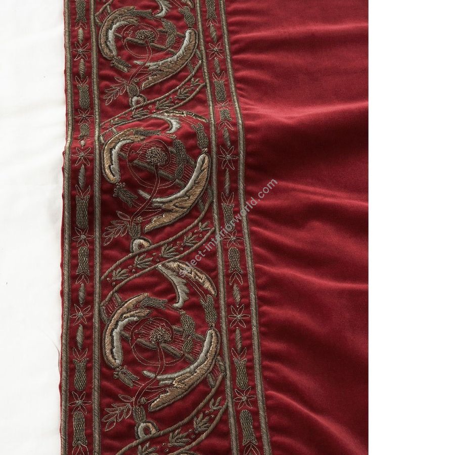 Reminiscent of the decorative textiles seen in the Tudor period, this richly embroidered design with its fine silver gilt needlework will add an air of historic elegance to any room.
