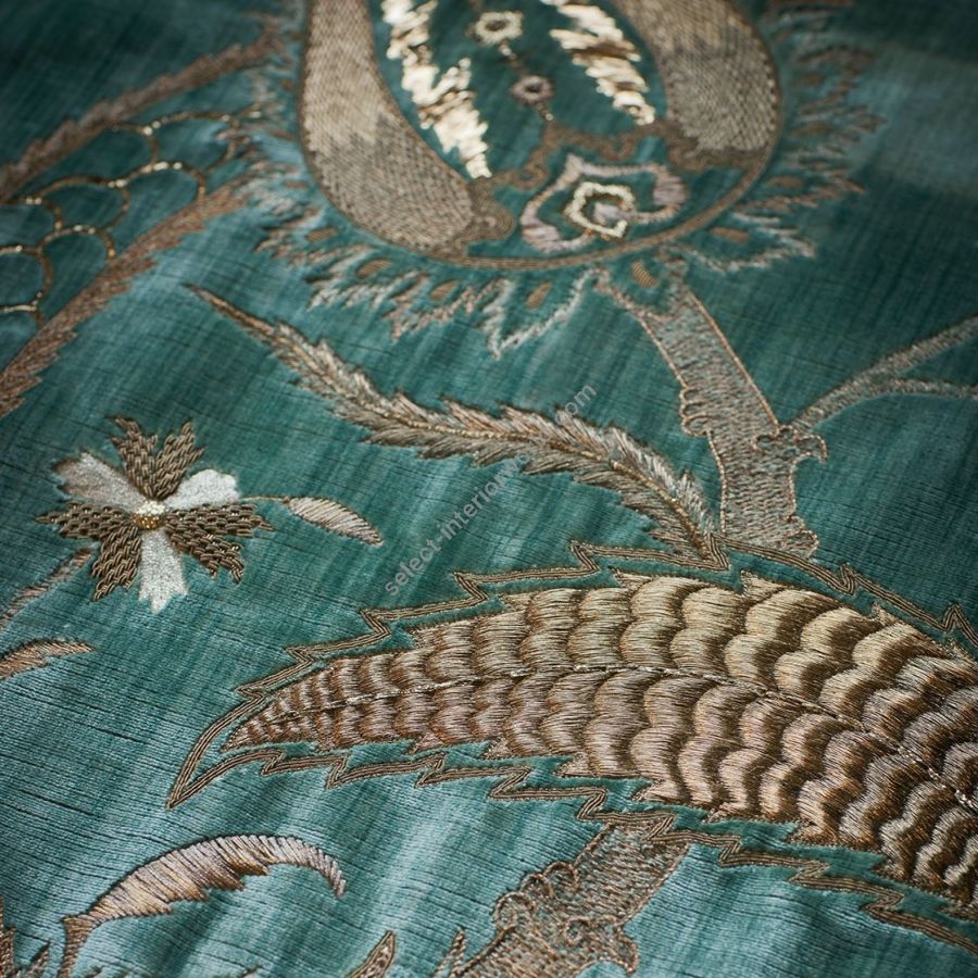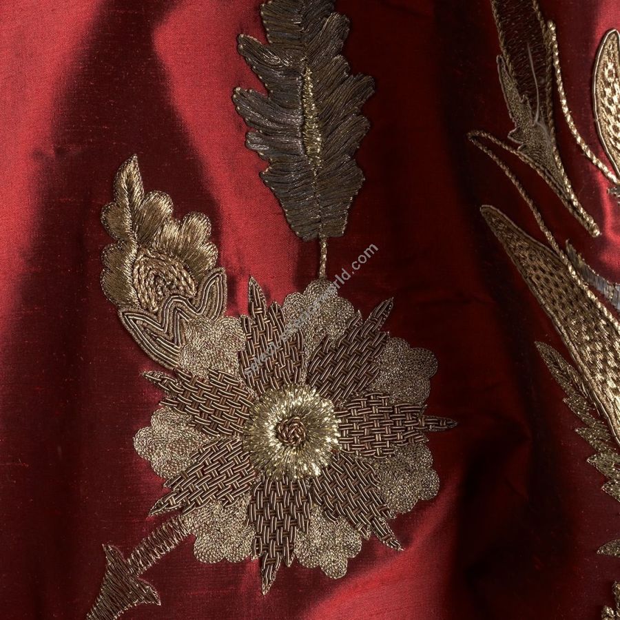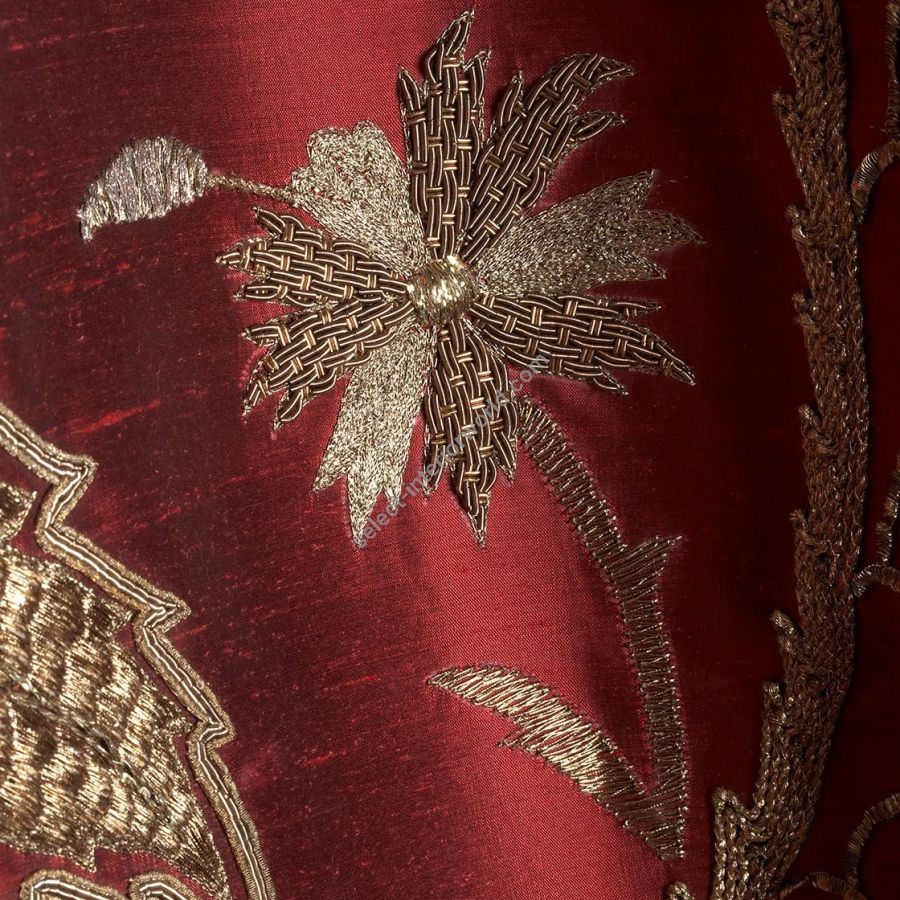 Salome is a dramatic, large scale design with a strong Ottoman influence. It displays a range of very fine embroidery techniques with intricate detail and texture.