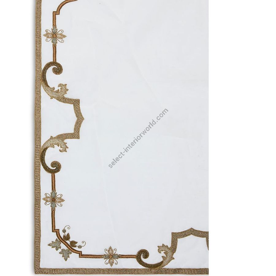 This elegant leading edge border design is reminiscent of the scrolling lines found on the façade of Roman architecture. Small flowers and fig leaves complete the elegant, understated pattern.