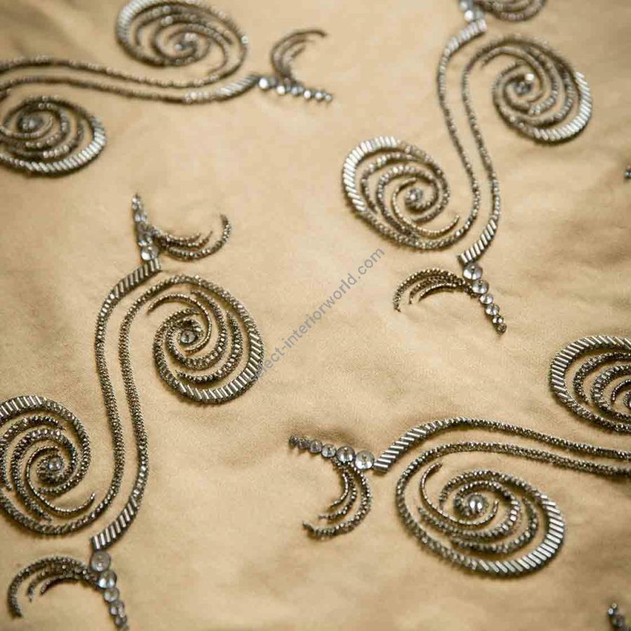 Zarbo is a dynamic Art Deco inspired design featuring an array of elegant spirals. The fine hand sewn beadwork results in a strong contemporary look and a striking visual allure.