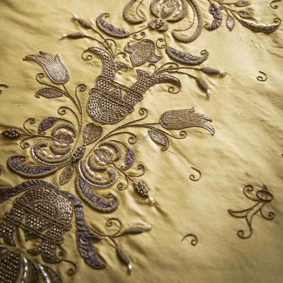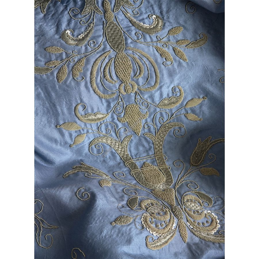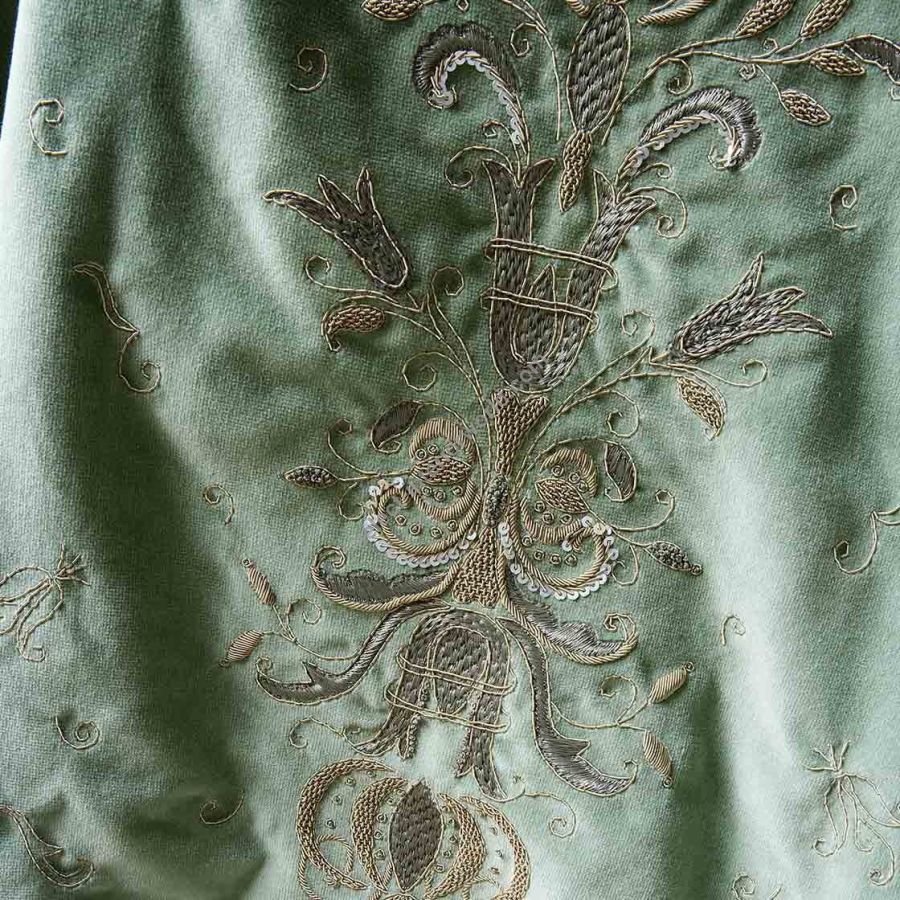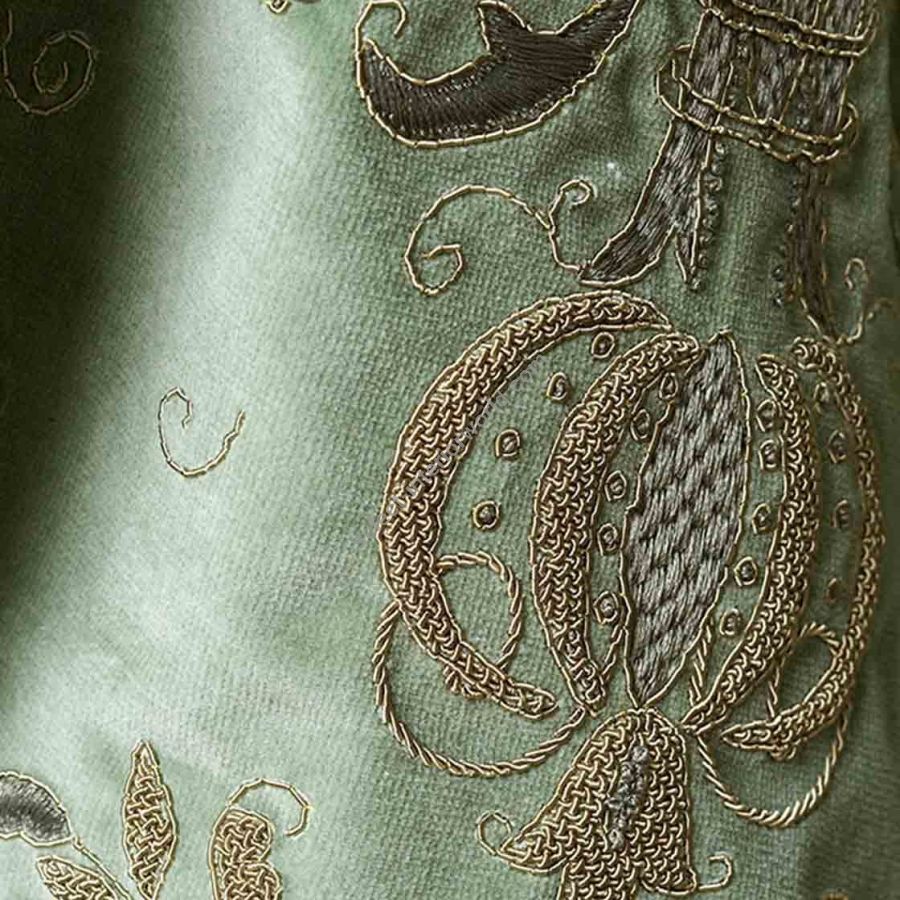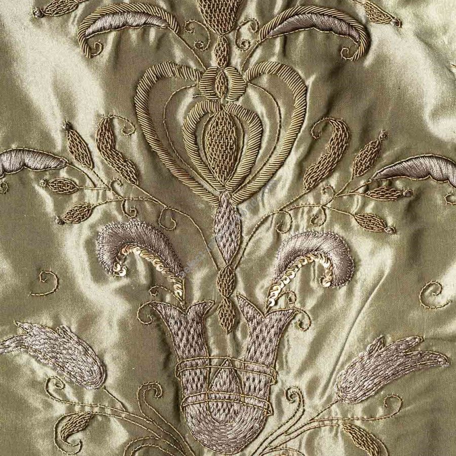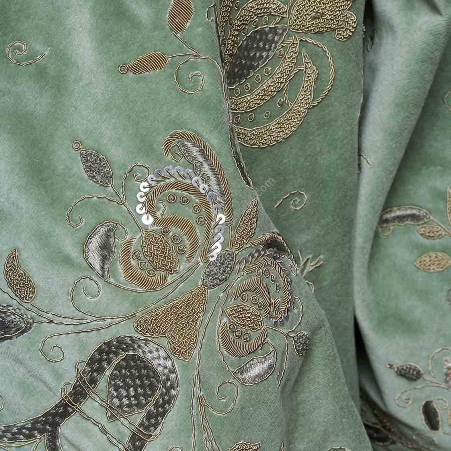 Our Couture fabrics are bespoke and hand embroidered to order. They can be created in fine gold or silver silk thread and embellished with freshwater pearls and semi-precious stones. Each pattern can be coloured and designed to fit your needs. We can embroider onto any background fabric including: silk, velvet, organza and leather
