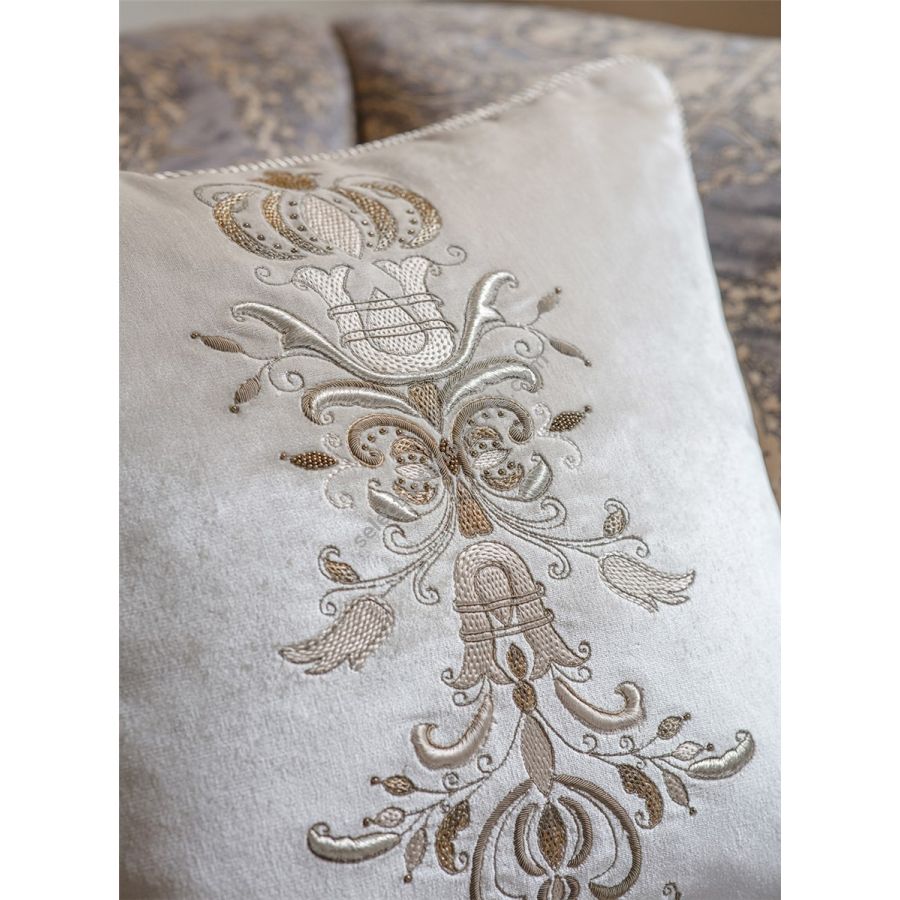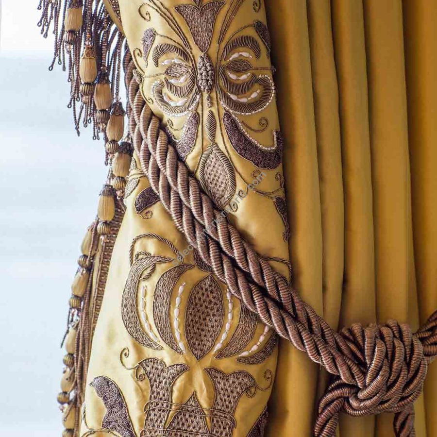 This Baroque inspired design features two main columns of beautiful mirrored embroidery and can be used to produce an elegant leading edge pattern for curtains and bedspreads.