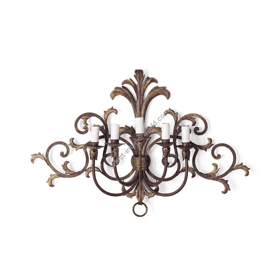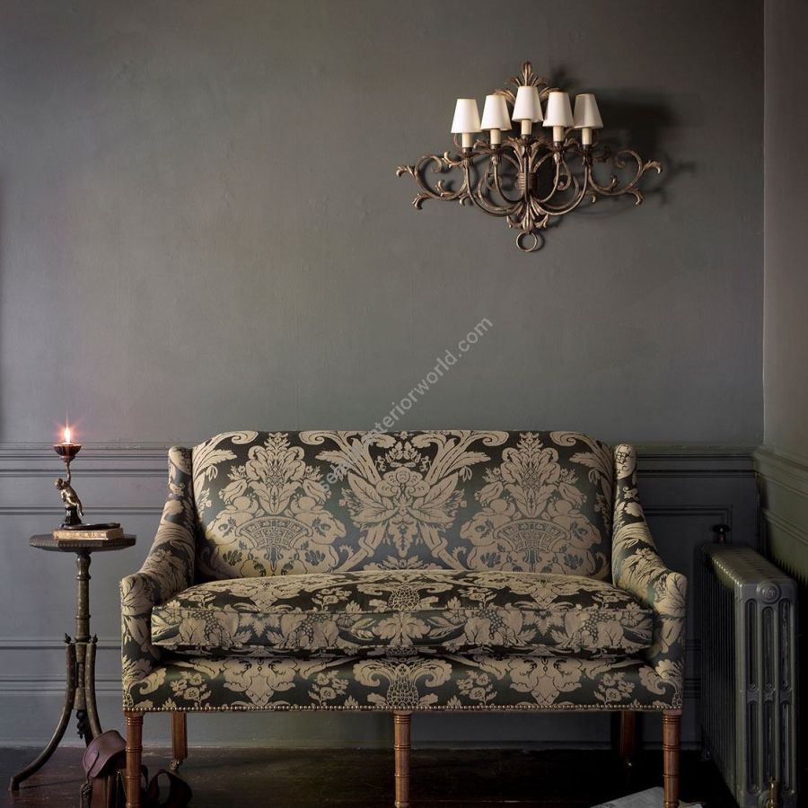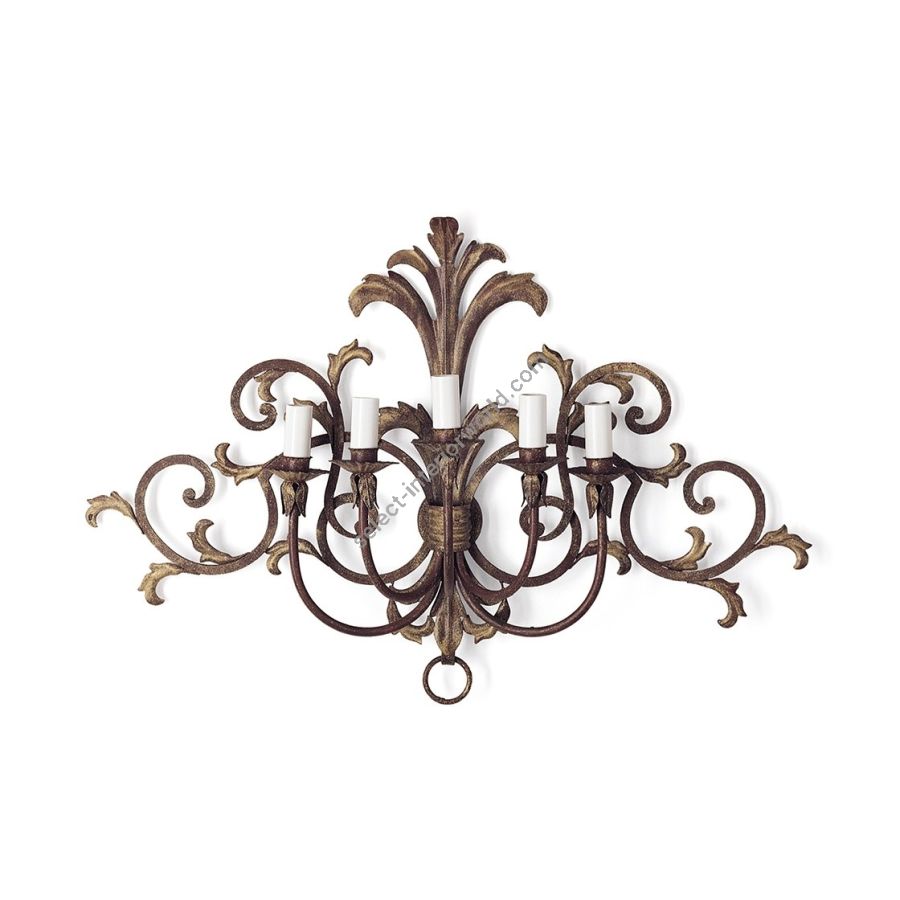 A five-branch wall light in a French provincial style, the Siena’s five arms extend out from a background tracery of scrolls and acanthus leaves.