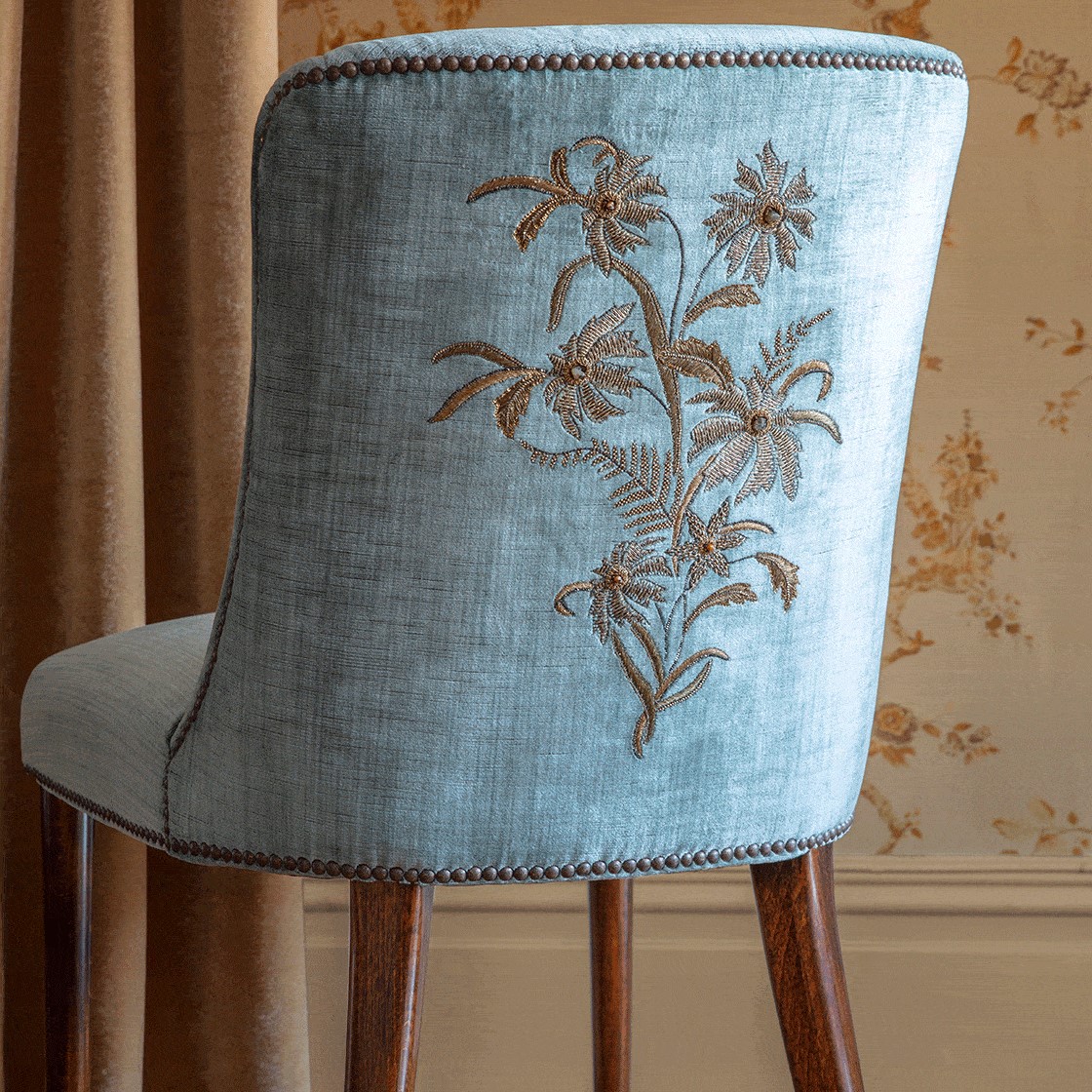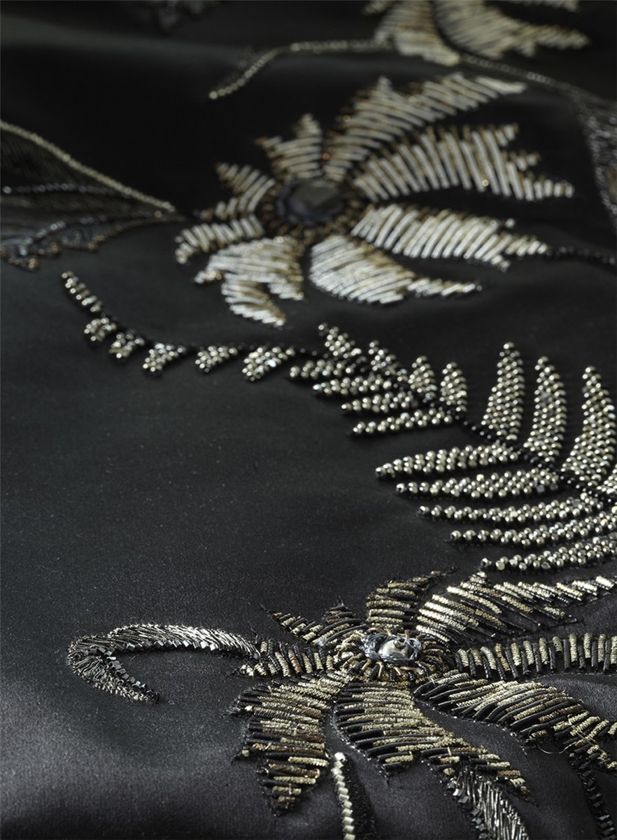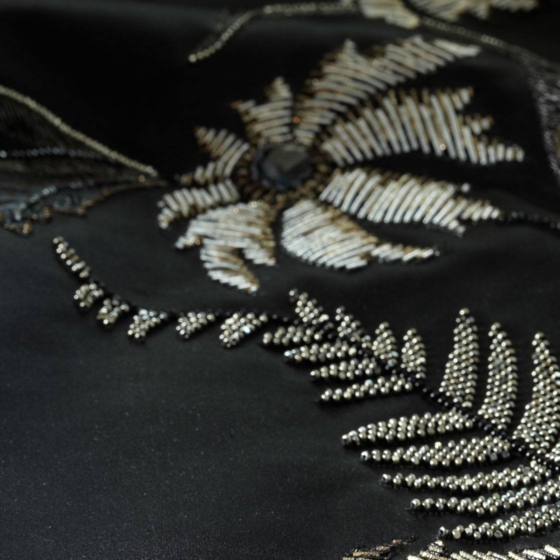 Our Couture fabrics are bespoke and hand embroidered to order. They can be created in fine gold or silver silk thread and embellished with freshwater pearls and semi-precious stones. Each pattern can be coloured and designed to fit your needs. We can embroider onto any background fabric including: silk, velvet, organza and leather.| Embroidered width | 120cm |