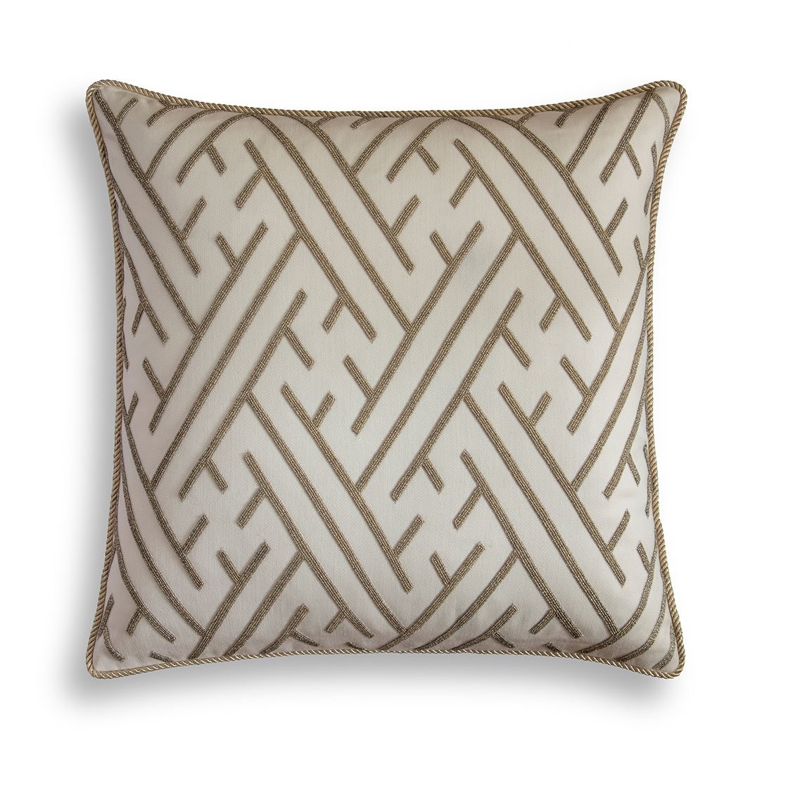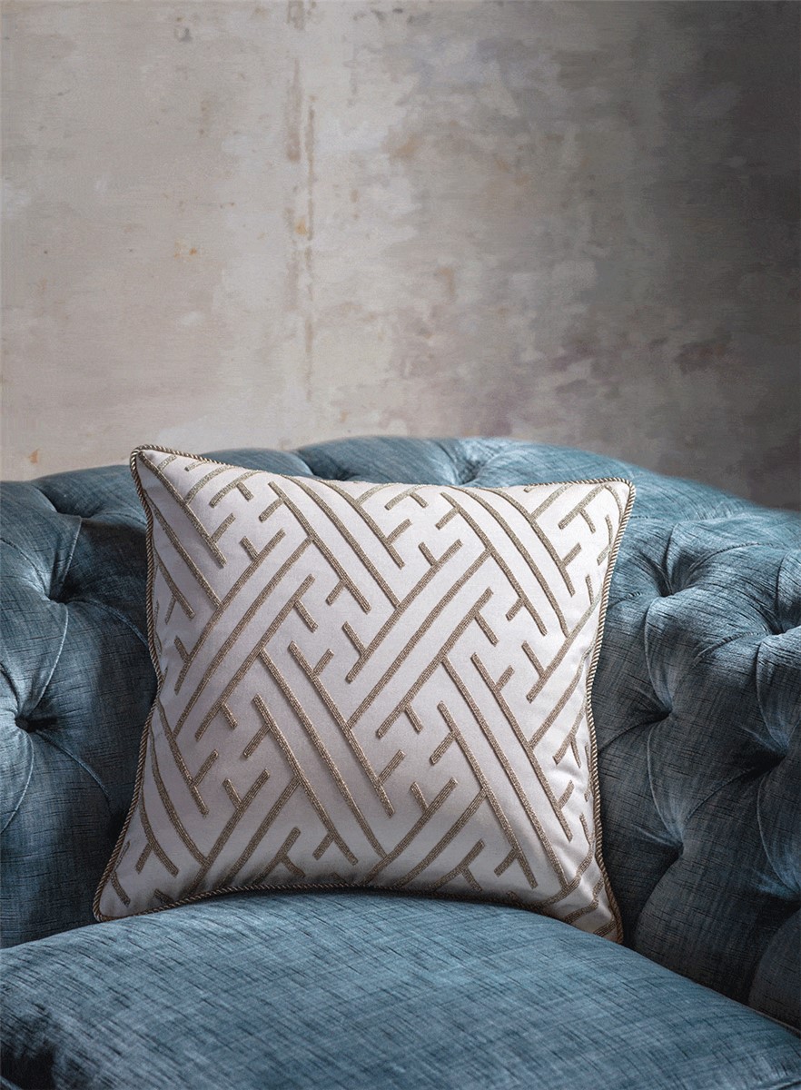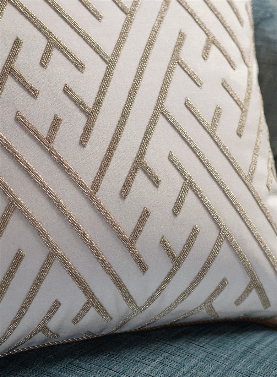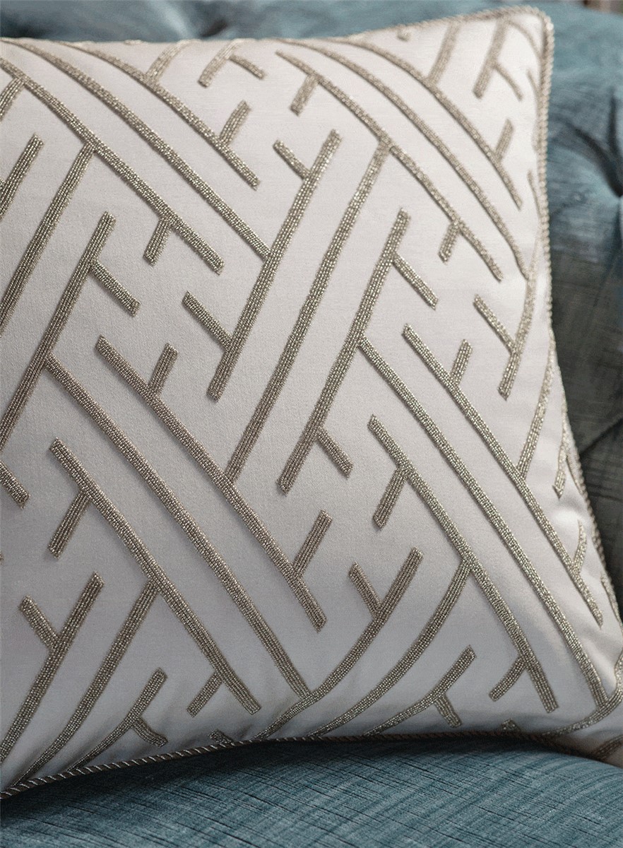 An exquisite design with an Art Deco influence, Elektra is enhanced by the fine hand sewn beadwork that forms its strong linear pattern.