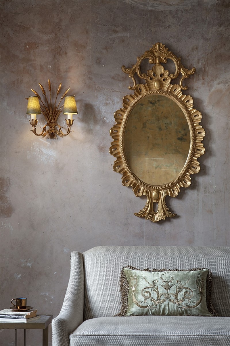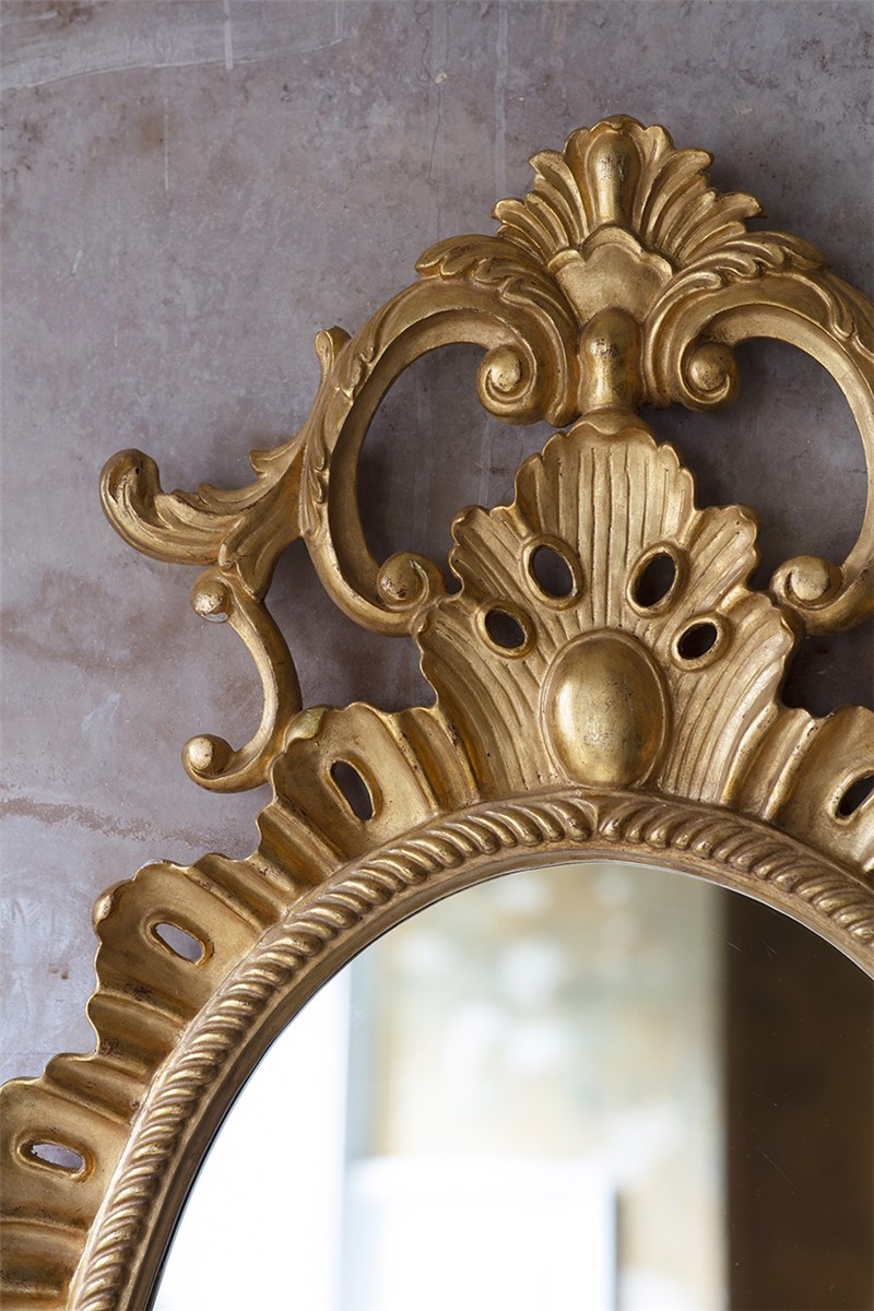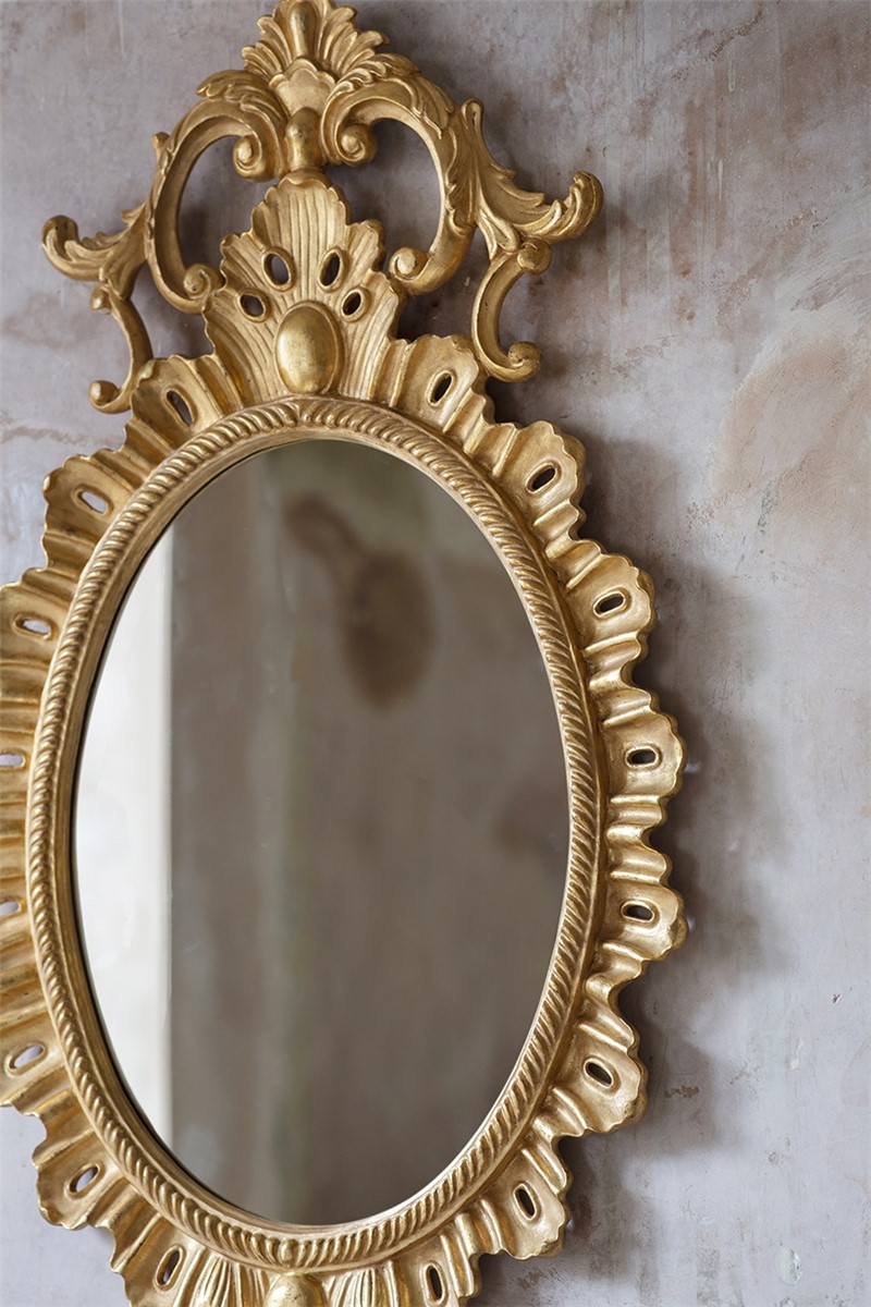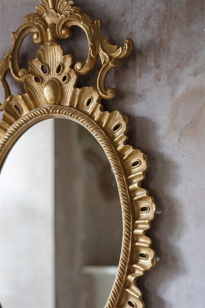 Our mirrors are made by skilled artisans. The unique range of highly decorative mirror is created by hand using traditional materials and methods, carved wood and gilding with subtle patination. The collection offers a unique and timeless style to interior decorators. Available only with plain mirror glass in the finish shown.| Width | 61cm |
