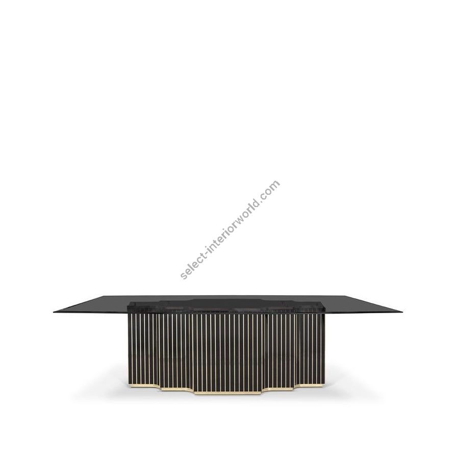 Inspired by one of the most famous hotels in Las Vegas, the Bellagio Dining Table was designed as the perfect solution for every occasion, seamlessly blending business with pleasure in a luxurious environment. With a robust structure made from brass, wood, and marble and a rectangular glass top, the Bellagio is an ideal choice for dining rooms, meeting rooms, and offices.