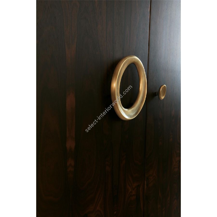 This sophisticated bar cabinet features a plywood structure veneered with Ziricote wood, finished in an elegant matte polish. Sculptural feet, handles, and internal elements in light bronzed matt brass add a refined contrast. Integrated LED lighting enhances the luxurious details, making it a functional yet stylish addition to any space. Designed by Ezio Bellotti, this piece reflects a perfect balance of craftsmanship and contemporary elegance.