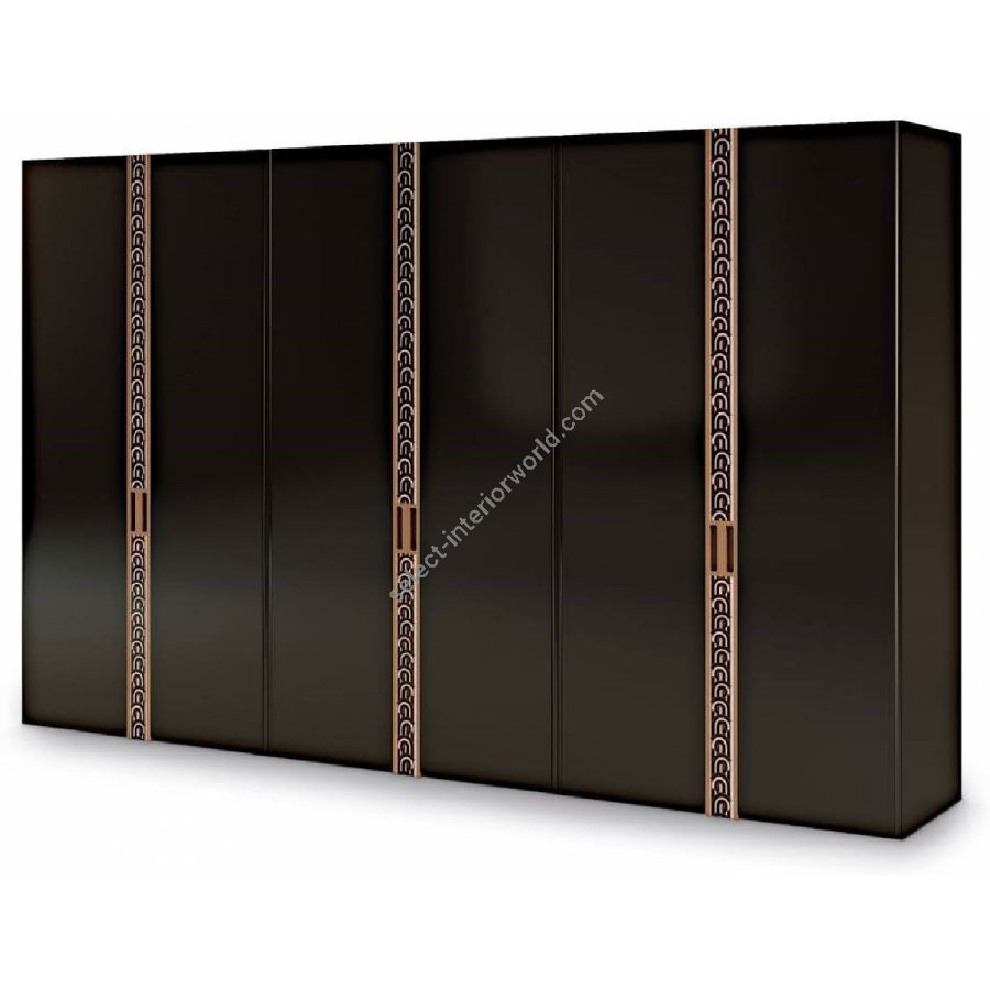 This wardrobe, designed by Ezio Bellotti, features a striking glossy black lacquered finish, enhanced by intricate polychrome inlaid woods. The combination of bold lacquer and detailed woodwork creates a sophisticated and luxurious appearance. A perfect fusion of modern style and craftsmanship, this wardrobe offers both functionality and aesthetic beauty, making it a stunning focal point in any room. Bellotti's designs are known for their high-quality materials and impeccable artistry, transforming everyday furniture into timeless works of art.