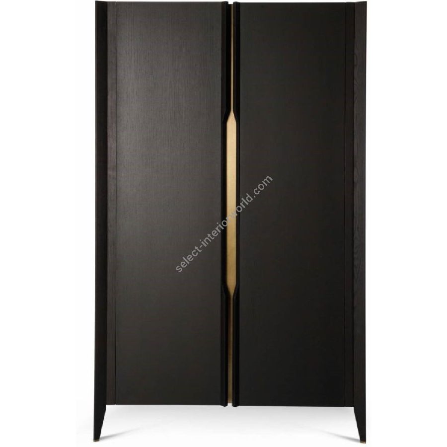 This double shutter wardrobe, designed by Ezio Bellotti, is a perfect blend of sleek design and functionality. The structure is crafted from plywood veneered with Ash wood, finished in a sophisticated urban black, creating a modern yet timeless aesthetic. The wardrobe is equipped with drawers, hangers, and trays, providing ample storage space. The drawers are elegantly covered with nabuk leather, while the interior features gray-dyed maple and details in light bronzed matt brass. Bellotti’s attention to detail and craftsmanship elevate this wardrobe, making it a stylish addition to any room.