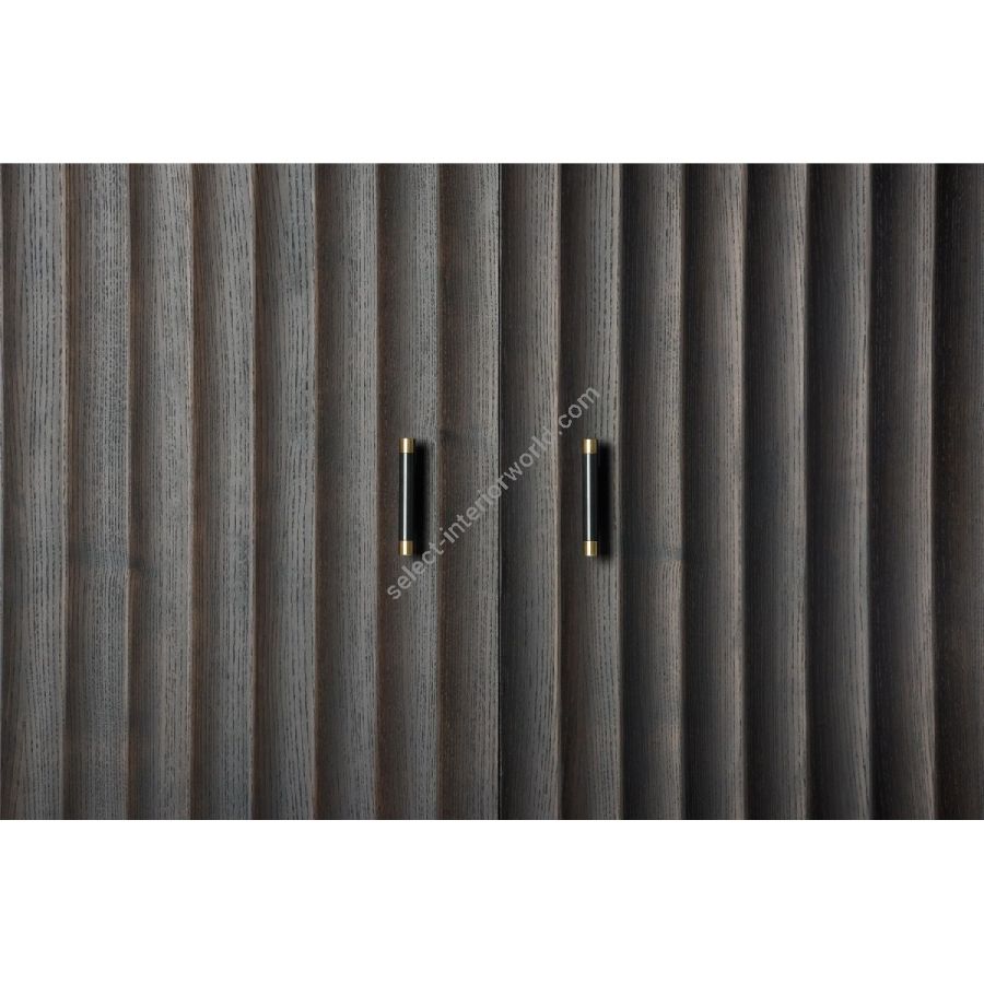 This bar cabinet is crafted in plywood with doors in MDF, veneered in a refined Moka brown Ash finish. The base in Ash wood with a matt black lacquered finish adds a touch of modern sophistication. Inside, the cabinet is equipped with drawers, shelves, and integrated LED lighting, offering both style and functionality. Designed by Ezio Bellotti, this piece seamlessly blends elegance with practicality.