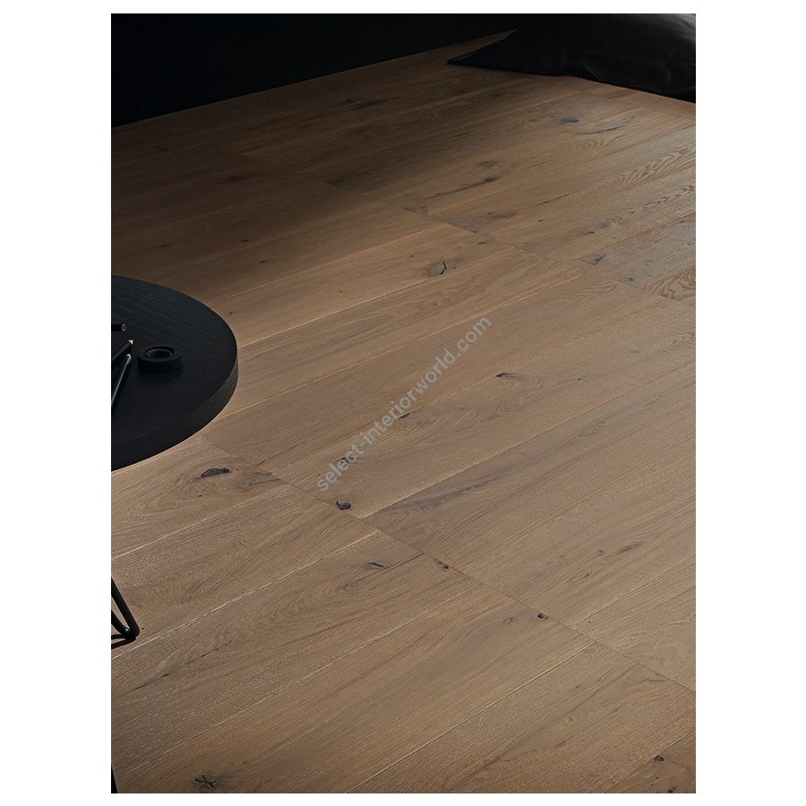 This flooring model is a brushed and varnished parquet, with grouted and planed wood for an extremely smooth, even surface. Each single compositional plank is bevelled on its 4 sides with diamond-tip tools to guarantee high-precision joints, excellent aesthetic results, and perfect surface flatness. Desaturated is a parquet suitable for any type of environment, including rooms with underfloor heating.