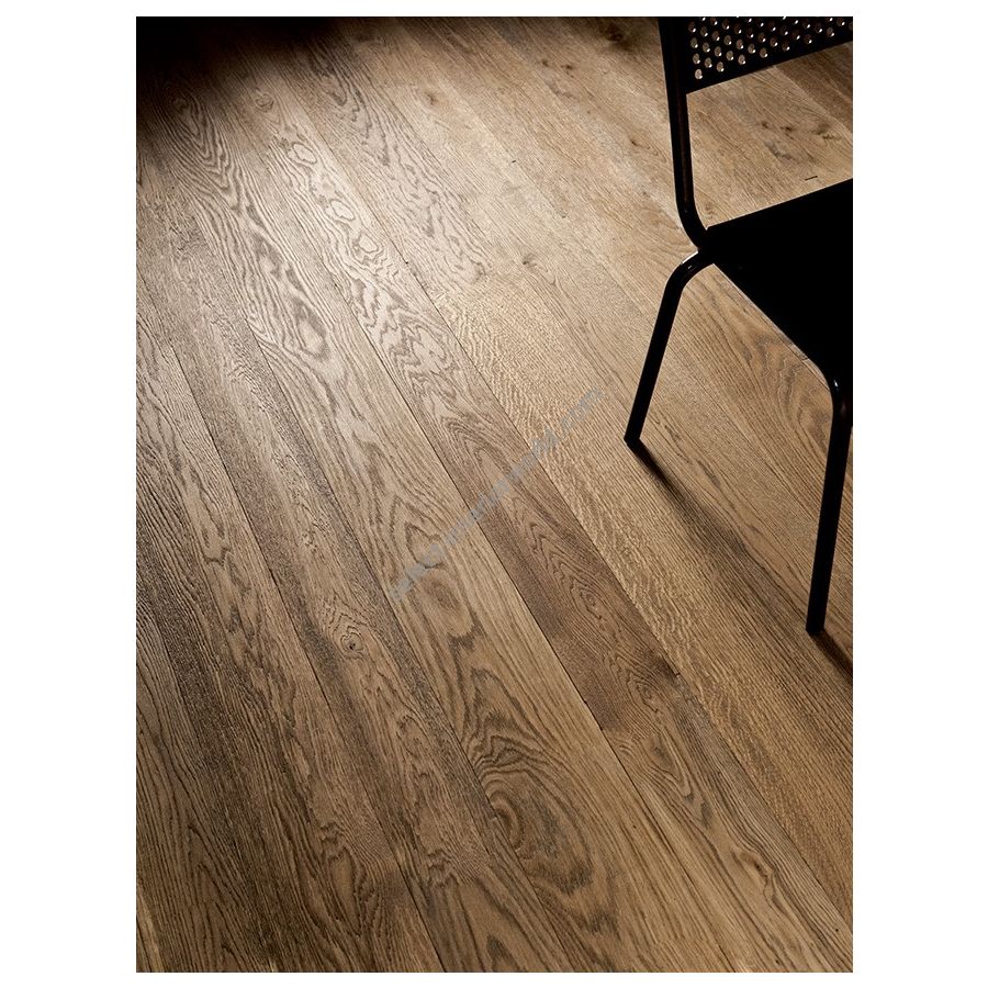 Natural inspiration for Vein, the parquet designed by Berti in collaboration with Diesel, from the Urban Grey line for the Diesel Living wood floors collection. A finish with a raw parquet texture that allows wood to emerge in the quality of its most distinctive and material features, thanks to the combined brushing and pickling treatments. Here, the oak is fully expressed in the grid of its lively veins, to describe a varied and impacting surface, without excluding a hint of surprise in the colour. The natural hazelnut tint is in fact contaminated by grey tips that detail the lines of the essence, creating a new and original nuance, for an atmosphere that has a more urban and contemporary feel. An aesthetic choice of industrial parquet, with a strong character and exclusive connotation.