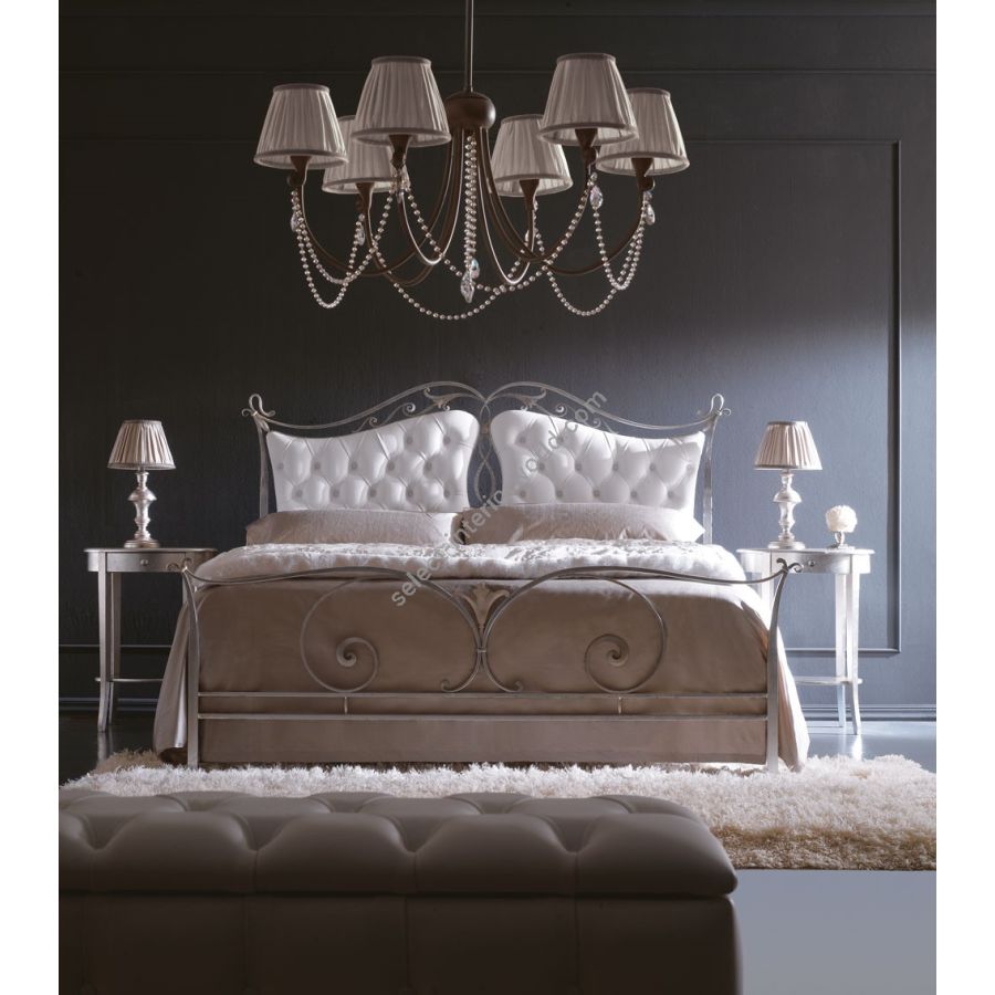 Classic bed made of forged iron, with matching footboard and iron bed frame. Romantic leaves and floral decorations intertwine to remember peaceful moments. A classicism that does not tire and remains unchanged over time. Also available without footboard, with padded bed frame, for a fresher and lighter version.