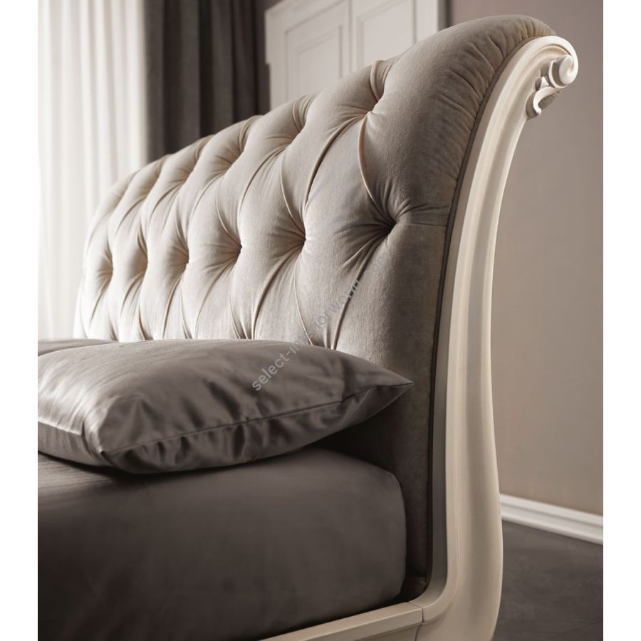 Classic bed realized in carved wood, with curved bedhead and bedrail padded and upholstered in capitonné. The noble reference of the shape, the precious work, the exclusive features remind to old splendour and sumptuous settings: anyway it is vivid the charm of the essential and the characteristic clean signature of CorteZari style. Available with or without bedfoot.